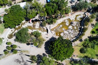 La Secretaría de Servicios Públicos del Municipio de Aguascalientes a través de la Dirección de Parques y Jardines, avanza en los trabajos de limpieza y rehabilitación integral que se llevan a cabo en el lago artificial del tradicional parque Miguel Hidalgo, en el barrio de la Purísima.