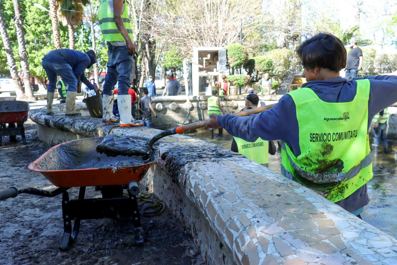 La Secretaría de Servicios Públicos del Municipio de Aguascalientes a través de la Dirección de Parques y Jardines, avanza en los trabajos de limpieza y rehabilitación integral que se llevan a cabo en el lago artificial del tradicional parque Miguel Hidalgo, en el barrio de la Purísima.