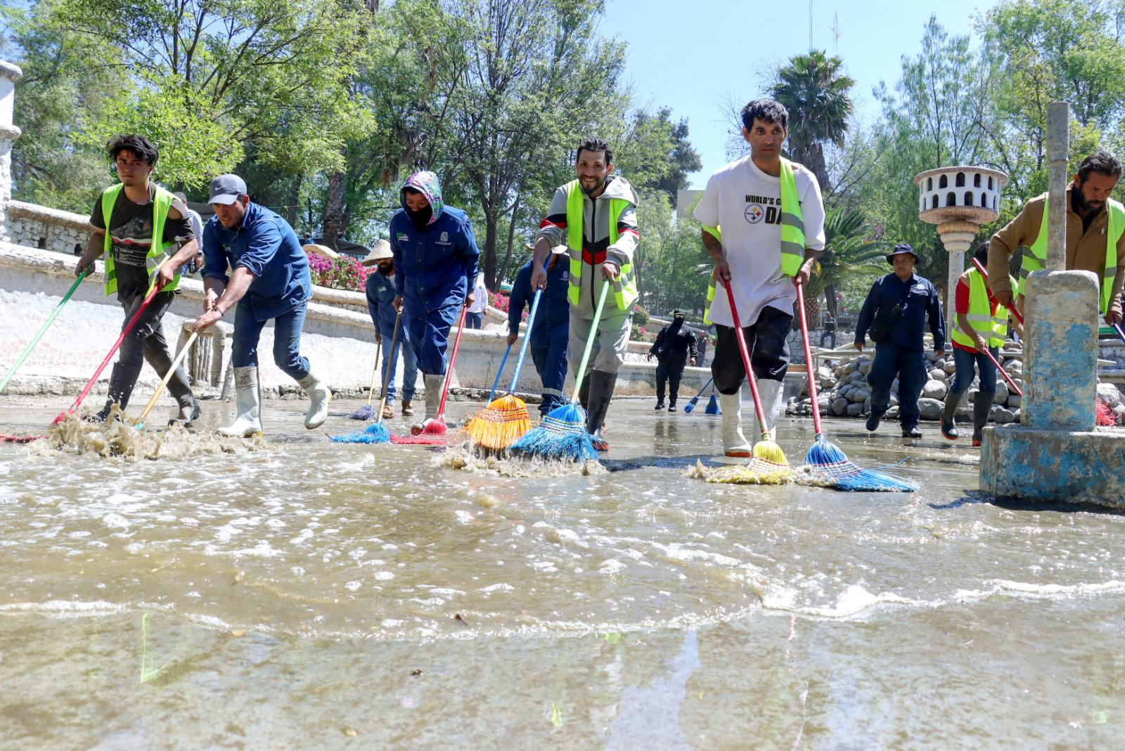 A partir del 25 de marzo, se dio inicio a una minuciosa labor de raspado de las paredes del lago, utilizando palas, espátulas, lijas y cepillos de alambre, con el objetivo de eliminar el sarro y detectar posibles grietas y ranuras, mismas que están siendo debidamente atendidas. El pasado 31 de marzo, se marcó un nuevo avance en el proceso de saneamiento con el lavado a profundidad del lago mediante hidrolavadora, reforzando las acciones de limpieza en esta importante área recreativa.