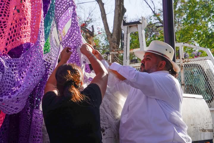 El director del IMAC, Iván Sánchez Nájera, destacó que, para esta Feria la instalación contará con grandes árboles tejidos a piso ubicados al inicio del Corredor. “El diseño del tejido de este 2025, está inspirado en las copas de los árboles del Jardín de San Marcos, destacando nuestras coloridas jacarandas . Y es dentro de esta propuesta, que la puerta de entrada cultural a la Feria los recibirá con este jardín tejido, que podrán recorrer en familia , hasta llegar al jardín real, el más representativo de nuestro estado y cuna de la verbena abrileña” destacó.