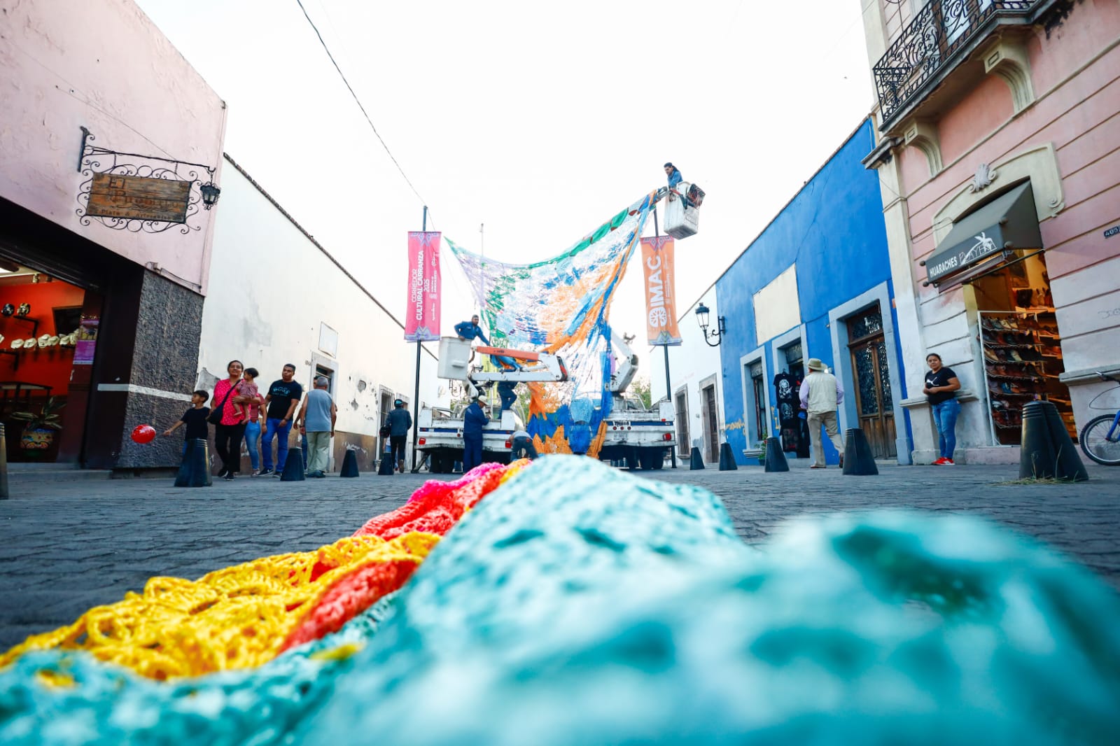 El Instituto Municipal Aguascalentense para la Cultura (IMAC), arrancó este sábado con la instalación de la decoración aérea del Corredor Cultural Carranza, misma que este año podrá ser apreciada por millones de visitantes a la Feria Nacional de San Marcos desde la calle Galeana hasta el Jardín de San Marcos.