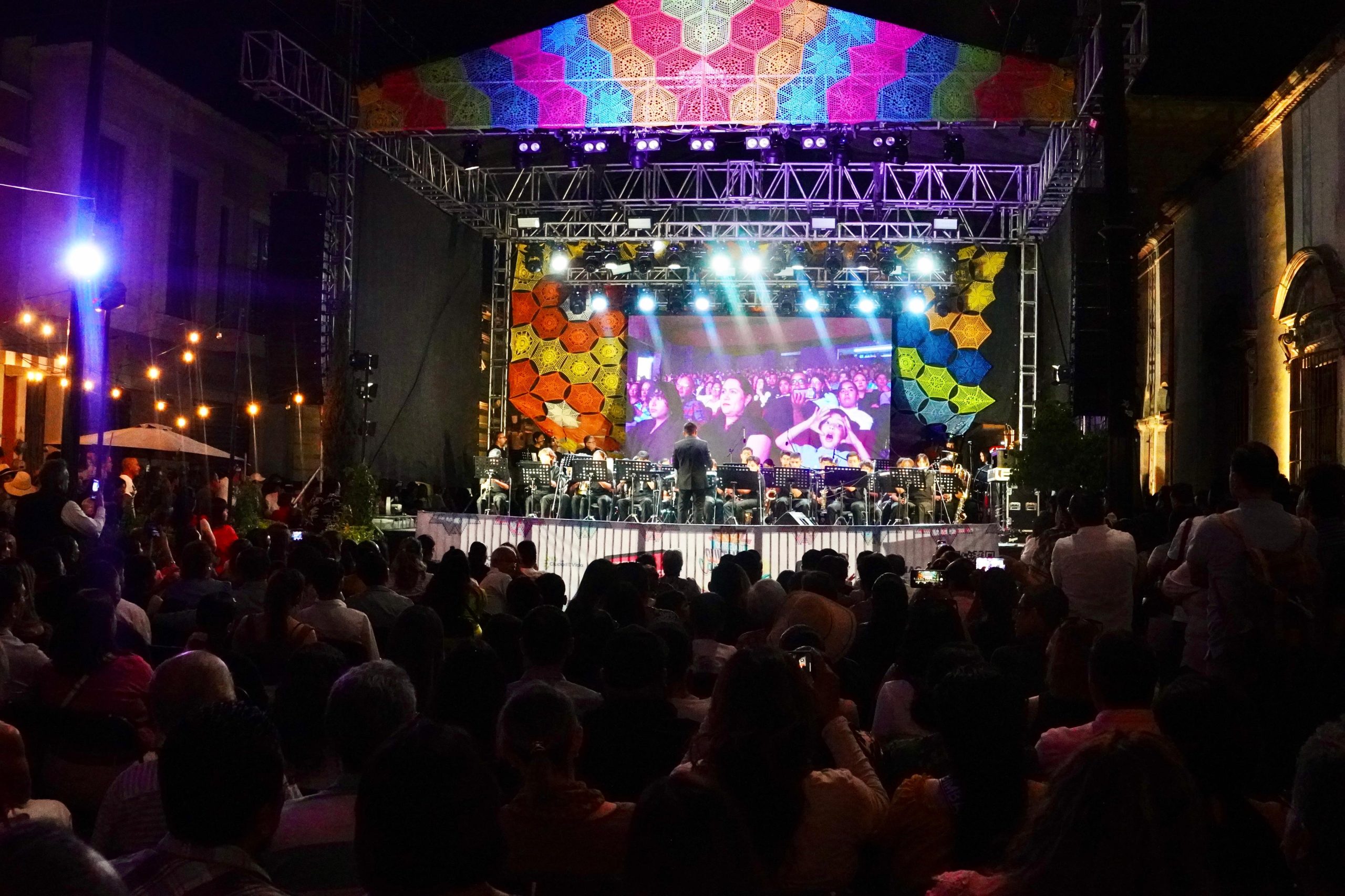 El concierto inició con la Banda Sinfónica COMPÁZ, dirigida por el maestro Issac Bautista, quienes abrieron con la interpretación del popular tema “Hasta que te Conocí” de Juan Gabriel, y pusieron a bailar al público con clásicos de la música disco como “I Will Survive” y un popurrí de ABBA.