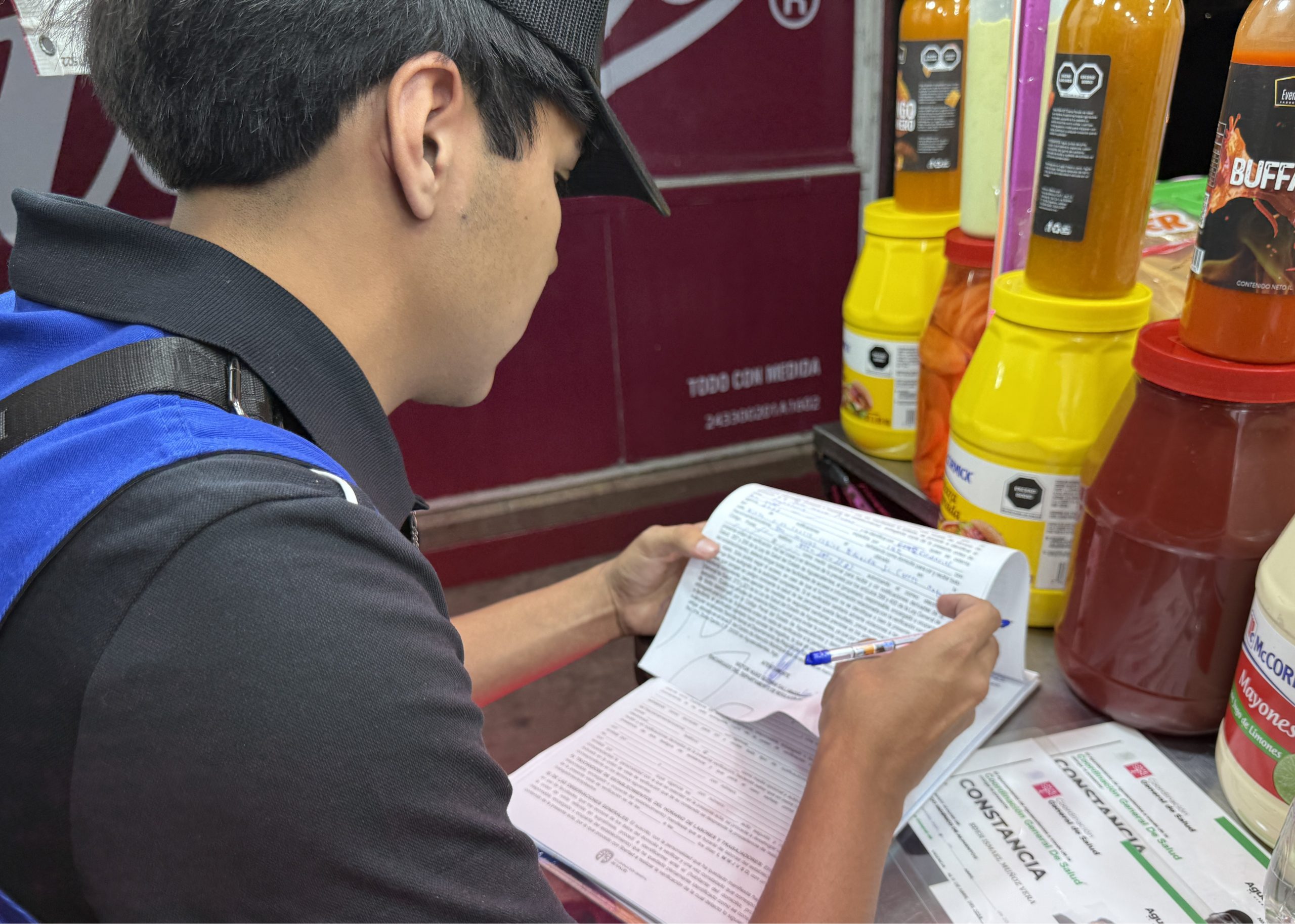 - Alimentos: El uso correcto de cubrebocas, cofia y mandil por parte de las personas que manipulan alimentos, tener agua para lavarse las manos, bote de basura, tener su constancia de manejo de alimentos, entre otros requisitos.