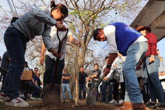 En el marco del Día de la Tierra y como parte de las estrategias de protección ambiental, al término de la Caravana se llevó a cabo la plantación de árboles tronadora y bugambilias en la esquina de calle Nieto y la avenida López Mateos.