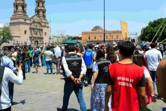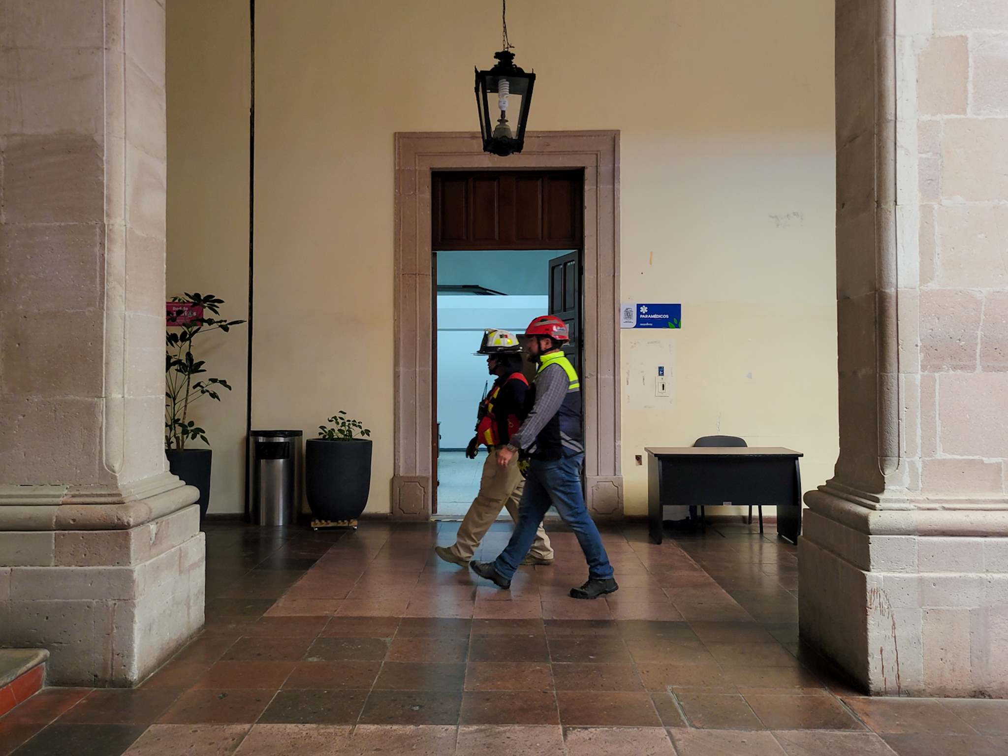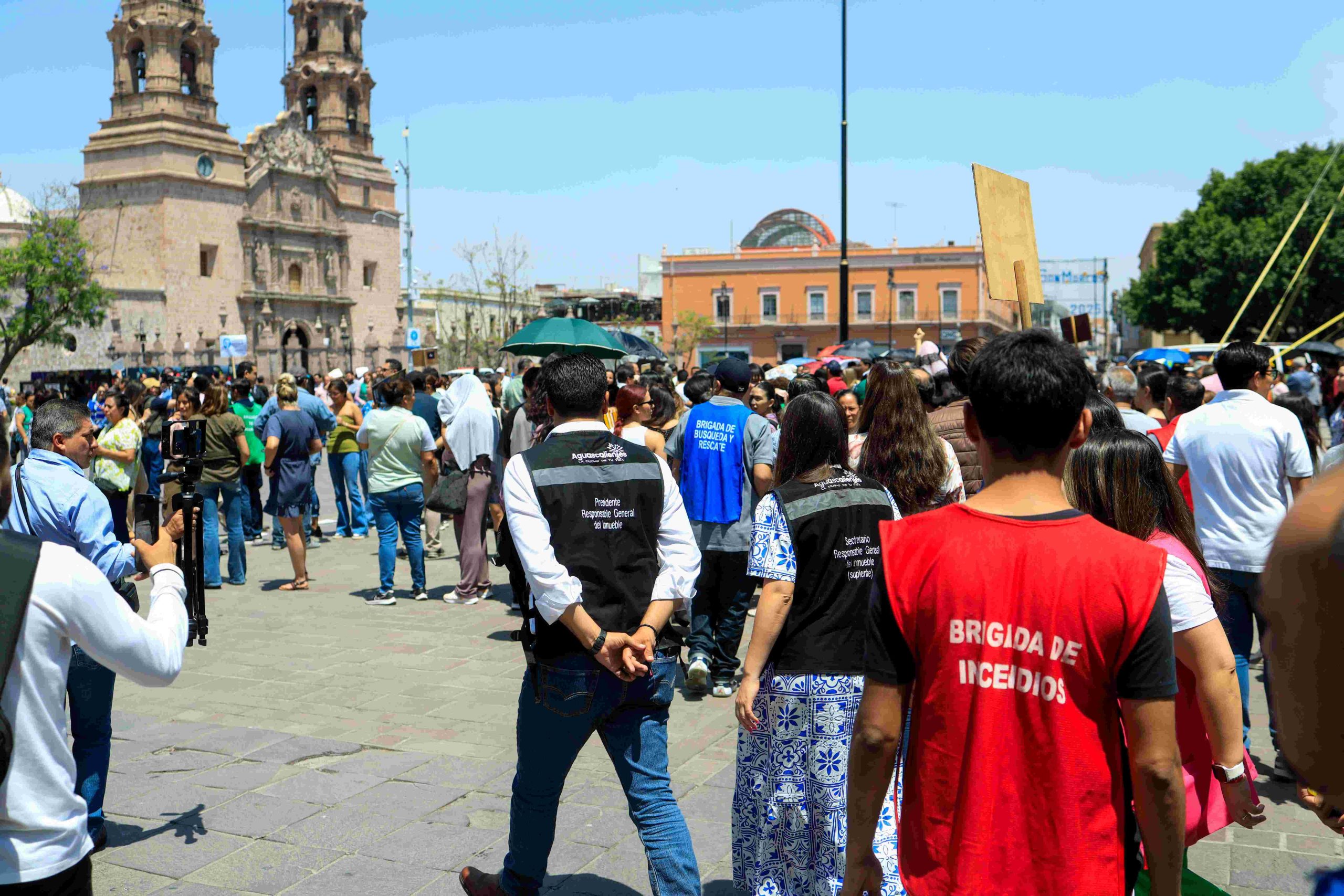 De manera inmediata y ordenada se siguieron los protocolos correspondientes y se logró evacuar en un tiempo de 4 minutos con 38 segundos de los Palacios Municipal y Estatal a 594 personas, 316 de Gobierno del Estado y 278 de Municipio de Aguascalientes, entre servidores públicos y ciudadanos que se encontraban realizando algún trámite.