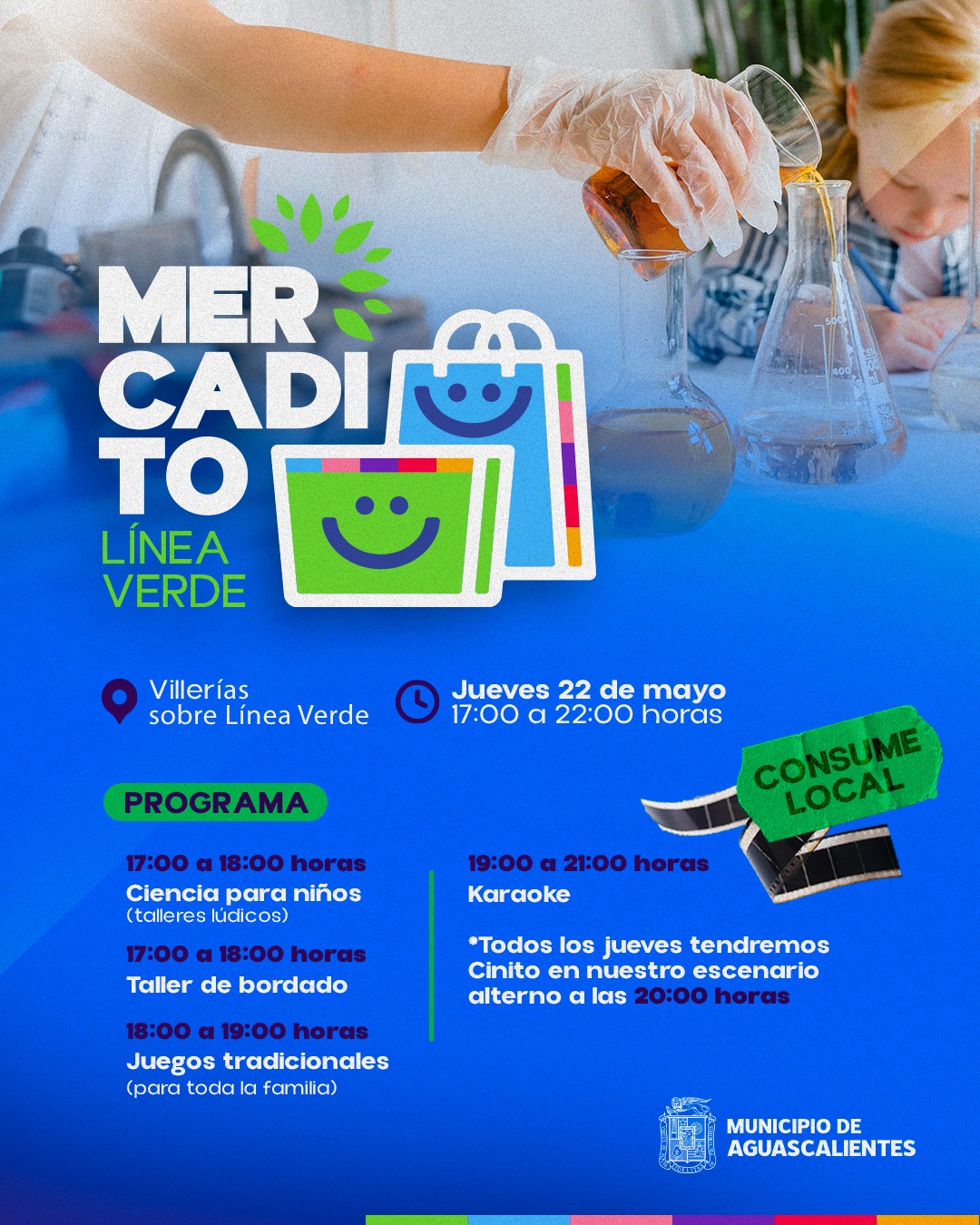 Con el propósito de impulsar el comercio local y fortalecer el tejido social, a través de actividades culturales y artísticas para toda la familia, el Instituto de Convivencia y Desarrollo Línea Verde reanuda las actividades del Mercadito Línea Verde, todos los jueves de cinco de la tarde a diez de la noche en Villerías.