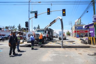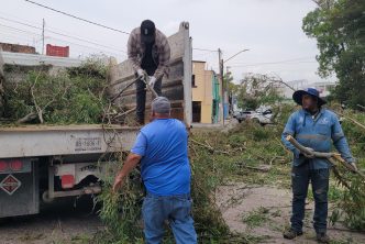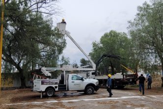 Por su parte, la Secretaría de Servicios Públicos Municipales, a través de Alumbrado Público y de Parques y Jardines, realizó el retiro de seis arbotantes y su cableado para liberar el área entre las calles Los Díaz y Sinaloa, en el fraccionamiento Ojo de Agua, para proceder al retiro de árboles en situación de riesgo, así como el despunte de otros ejemplares para disminuir su altura y carga estructural, a fin de mejorar las condiciones de seguridad y visibilidad de esta zona.