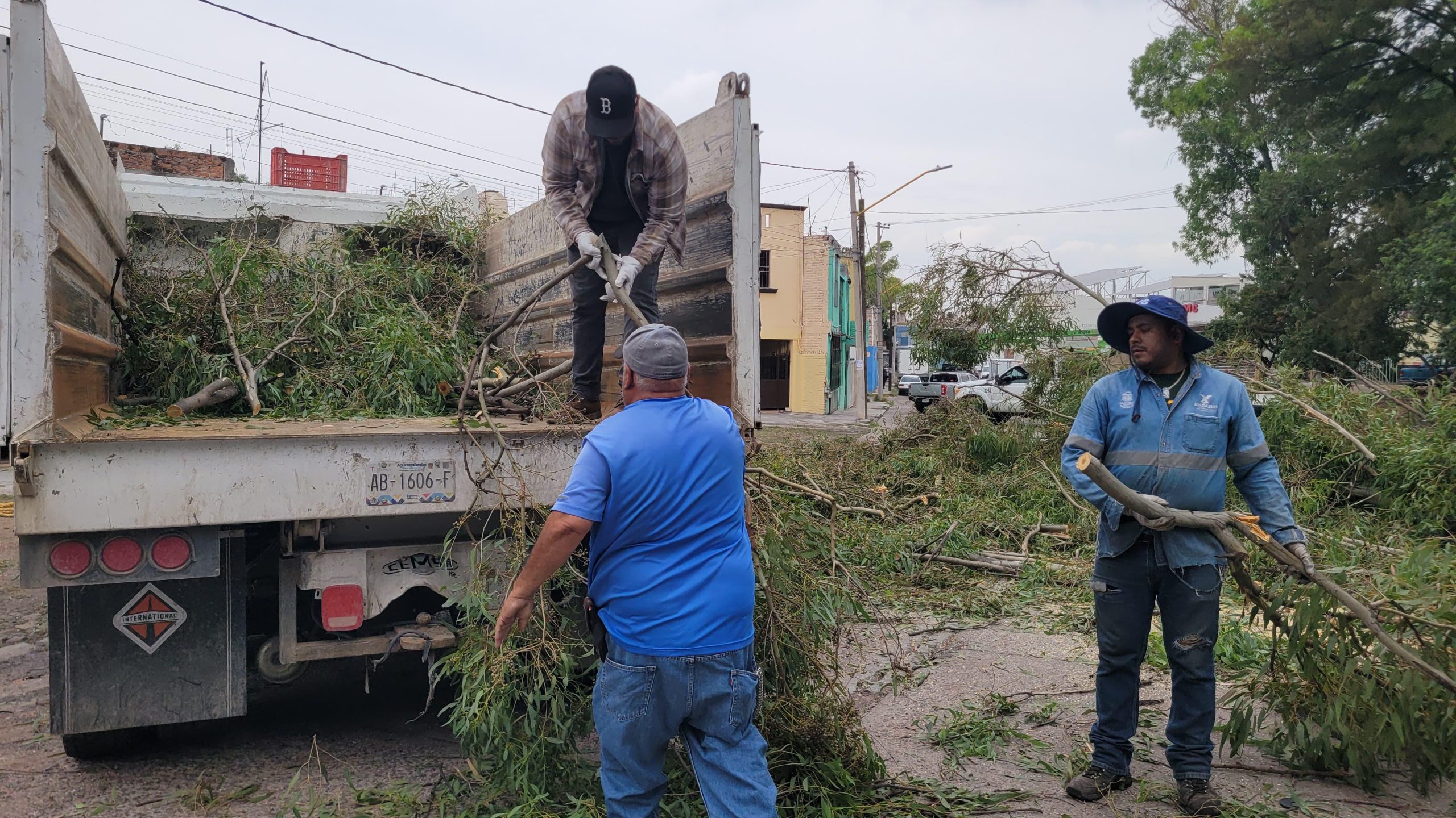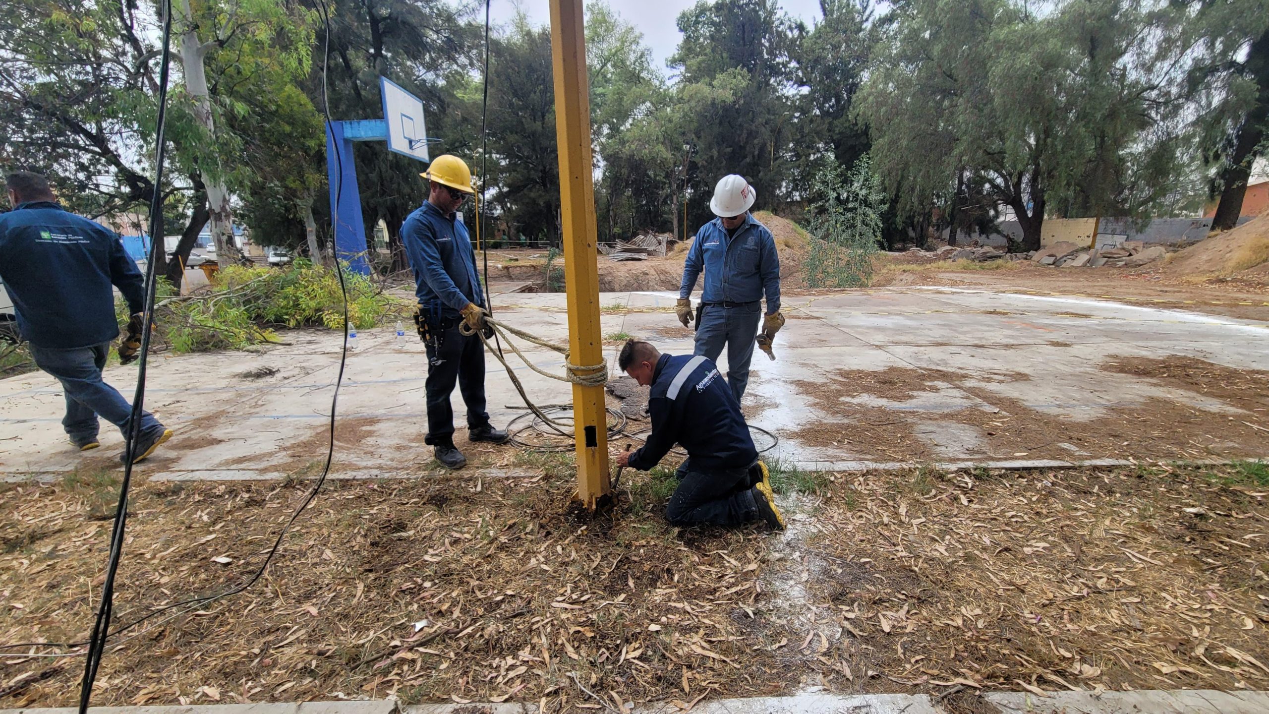 Por su parte, la Secretaría de Servicios Públicos Municipales, a través de Alumbrado Público y de Parques y Jardines, realizó el retiro de seis arbotantes y su cableado para liberar el área entre las calles Los Díaz y Sinaloa, en el fraccionamiento Ojo de Agua, para proceder al retiro de árboles en situación de riesgo, así como el despunte de otros ejemplares para disminuir su altura y carga estructural, a fin de mejorar las condiciones de seguridad y visibilidad de esta zona.