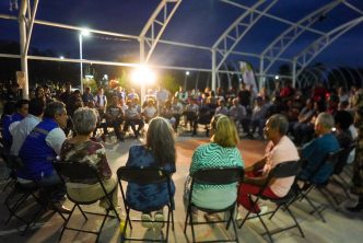 Acompañado por el diputado local Humberto Montero e integrantes del Gabinete Municipal, el presidente municipal escuchó a las y los vecinos, con quienes se plantearon estrategias para fortalecer la seguridad en zonas clave del fraccionamiento, para instalar líneas moradas para el riego de áreas verdes y mejorar las condiciones de la Unidad Deportiva Villa Teresa, entre otras solicitudes.