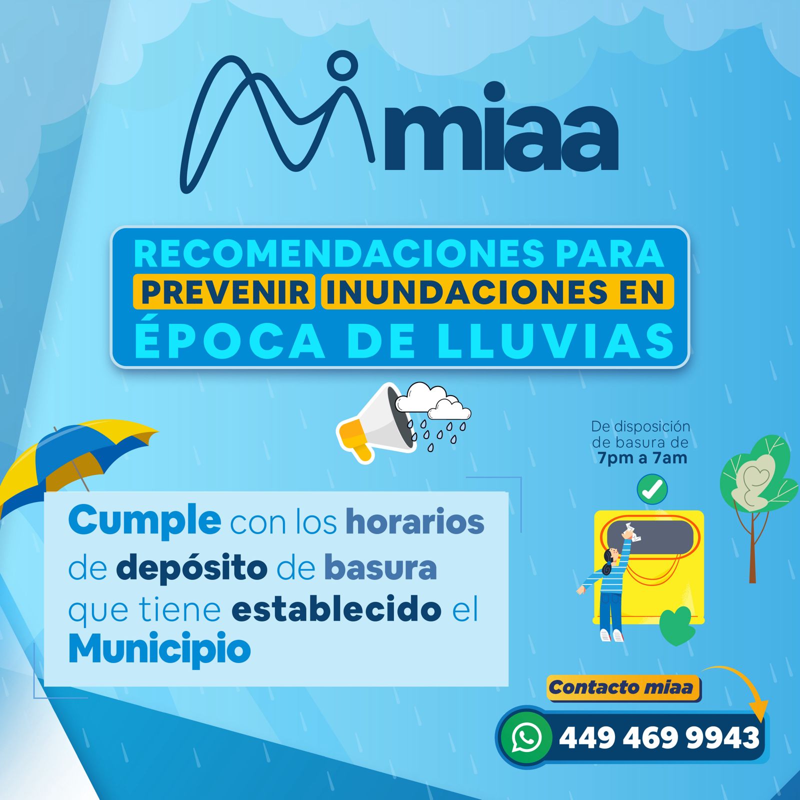 Ante la Temporada de Lluvias y Huracanes 2025, el Modelo Integral de Aguas de Aguascalientes (MIAA), hace un llamado a la ciudadanía a seguir diversas recomendaciones de prevención y seguridad, para prevenir inundaciones y daños en la infraestructura urbana y patrimonio particular.