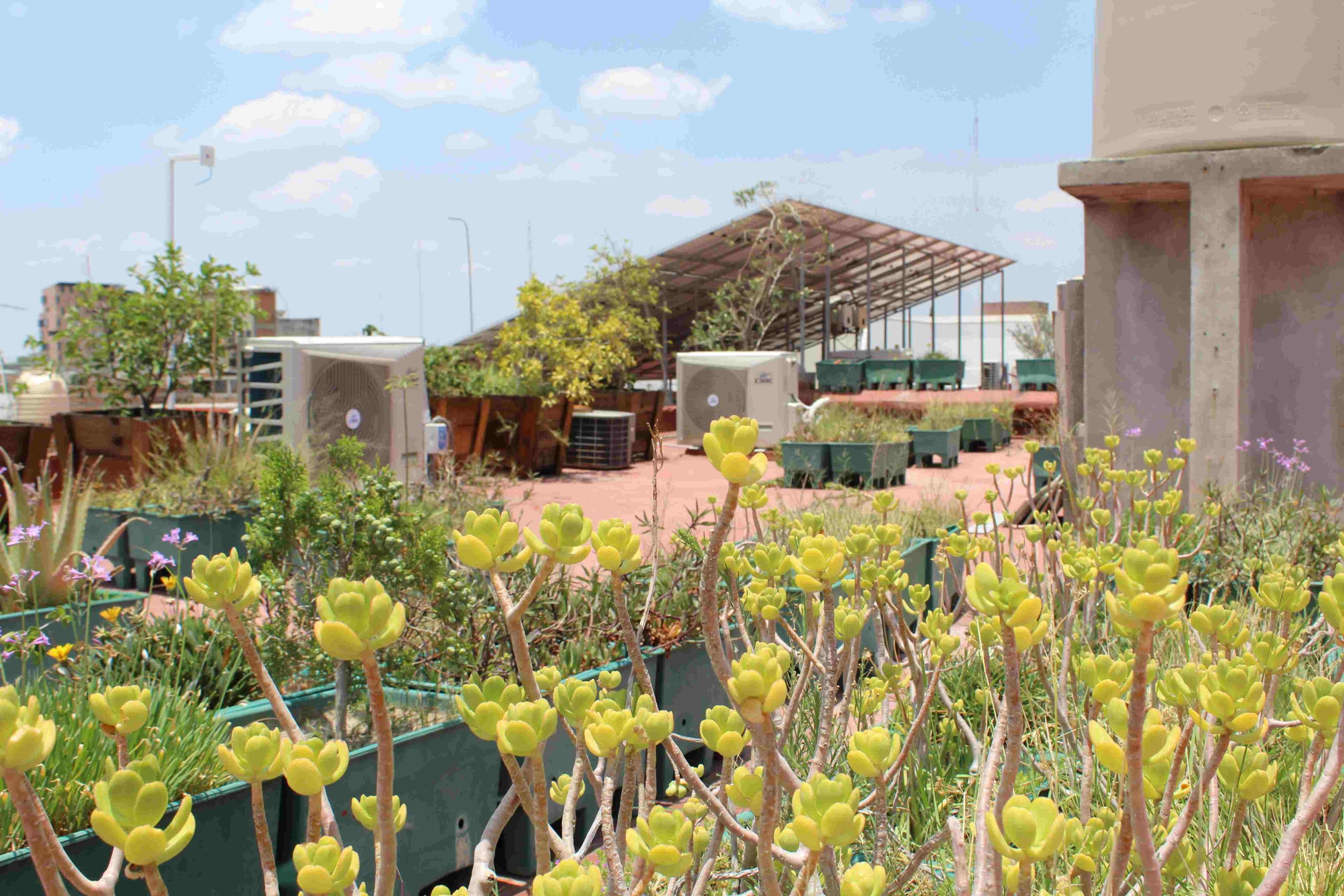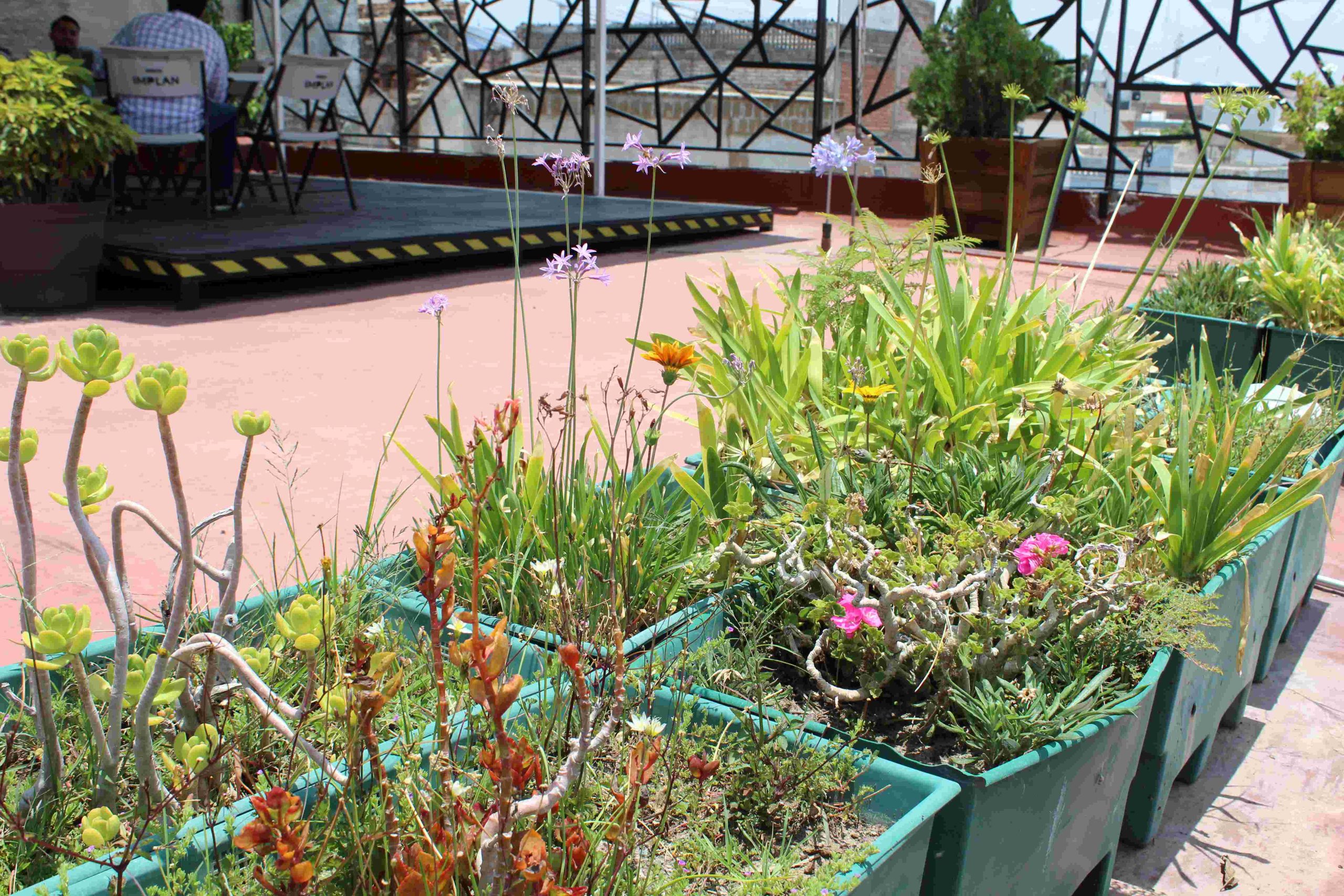 - Mantienen en excelentes condiciones una azotea verde con más de 25 especies diferentes entre árboles y plantas florales, que brindan oxígeno y un lugar de convivencia a los colaboradores,