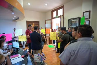 AUTORIDADES MUNICIPALES ATIENDEN A MANIFESTANTES DEL GREMIO DE ABARROTES