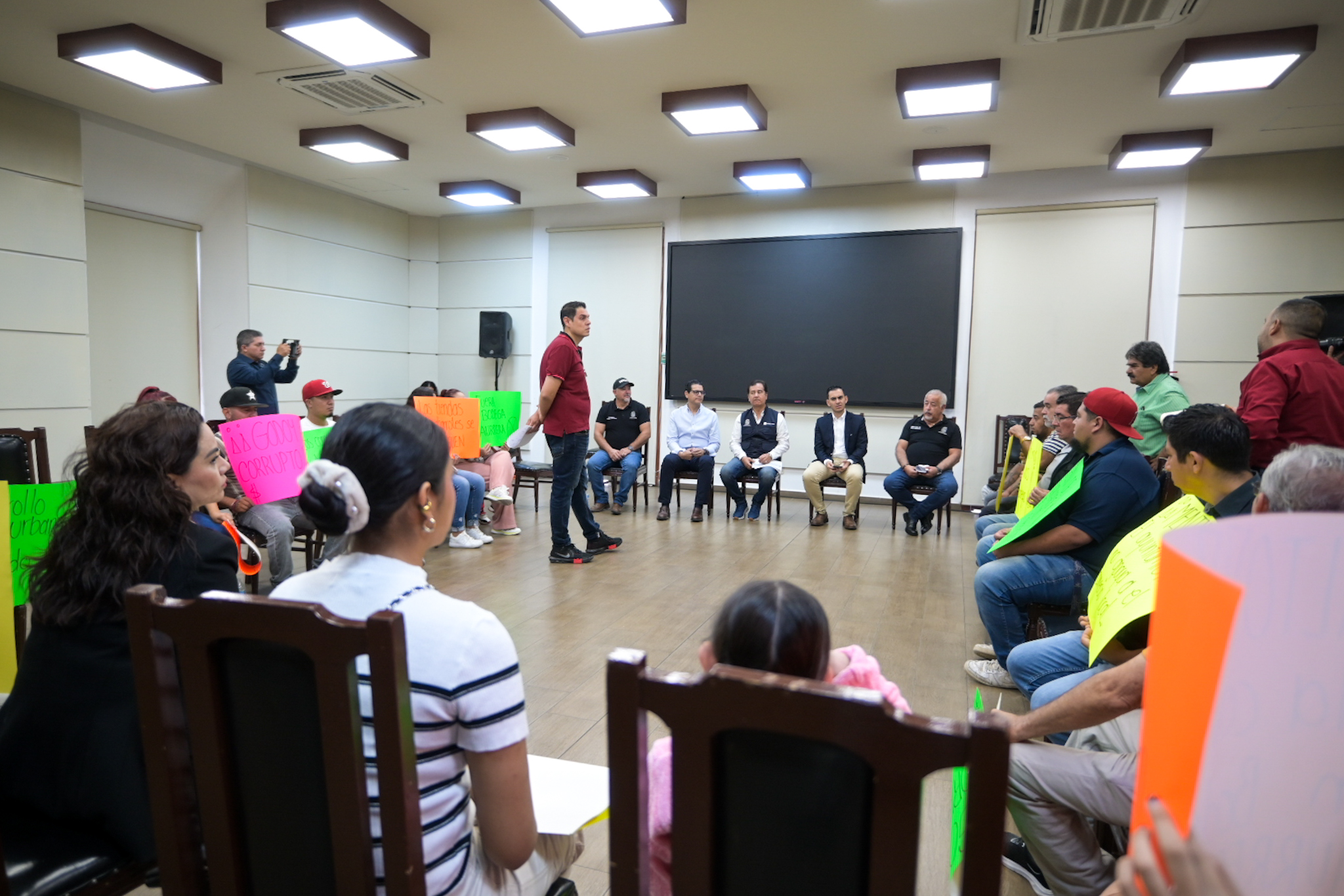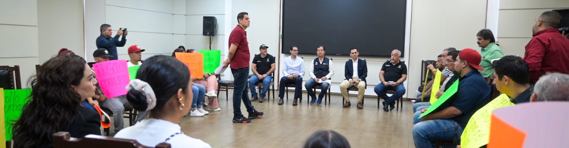 En la reunión estuvieron presentes el titular de la Secretaría de Desarrollo Urbano, Oscar Tristán Rodríguez GodoyJavier Soto Reyes, secretario Particular, Israel Díaz García, del director de Mercados, Estacionamientos y Áreas Comerciales, Roberto Amézquita Camarillo, director de Reglamentos y el director de Movilidad Municipal, José Luis Rodríguez Montoya.