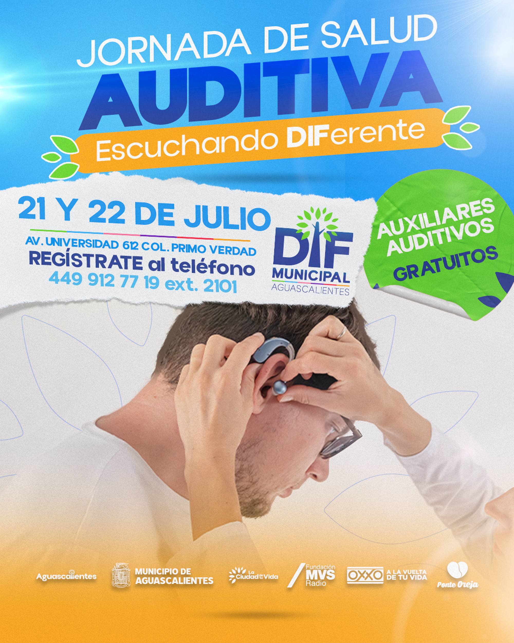 Con el propósito de mejorar la calidad de vida de personas en situación vulnerable, el Municipio de Aguascalientes, a través del DIF Municipal, en coordinación con Fundación MVS Radio y Grupo OXXO, llevará a cabo la jornada de salud auditiva integral “Escuchando DIFerente”, un programa social de alto impacto que busca atender de forma directa y especializada la salud auditiva de nuestra población.