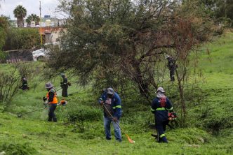 Durante la jornada, se intervinieron más de 8 mil metros cuadrados sobre el cauce del arroyo que divide los fraccionamientos Valle de Los Cactus y Balcones del Valle.
