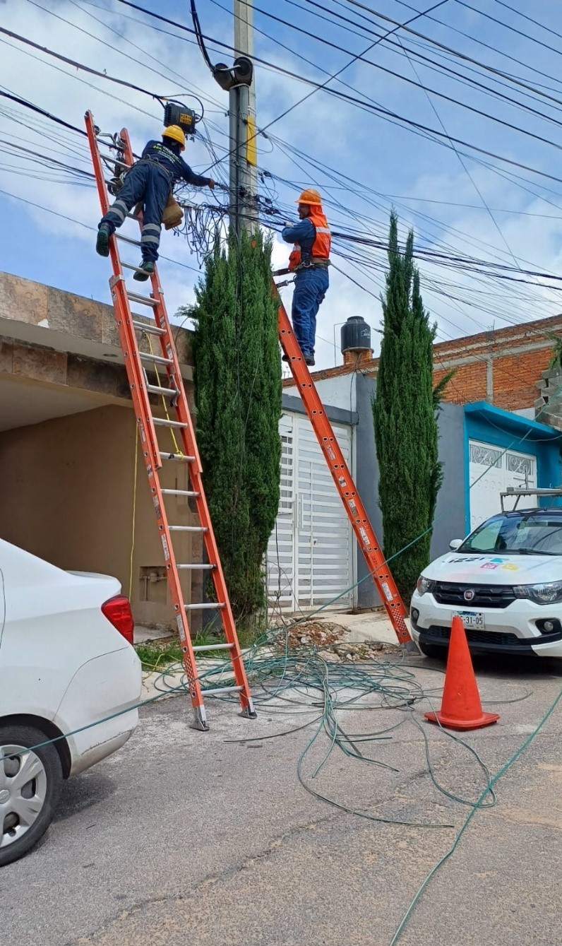 El Municipio de Aguascalientes continúa con el operativo para el retiro de cables en desuso para mejorar la imagen urbana de la ciudad, llevando a cabo el reacomodo de fibra óptica, cambio de donas (rollos) a raquetas y alturas mínimas oficiales. En esta ocasión personal de la Secretaría de Desarrollo Urbano (Sedum), realiza este operativo la calle Cataratas del Niágara, en el fraccionamiento Vistas de Oriente.