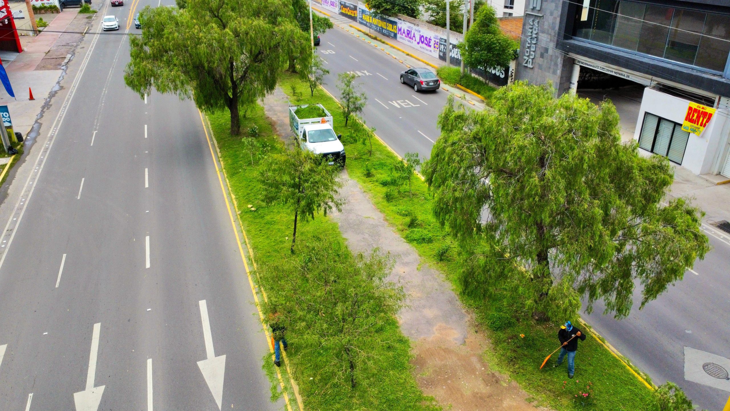 Posteriormente, se trabajó en la Av. Independencia, en el tramo comprendido entre Petróleos Mexicanos y la calle Ébano, donde se atendieron 4,256 metros cuadrados de camellón central. En la Av. Universidad, de Av. Aguascalientes hasta el arroyo El Molino, se realizaron trabajos de limpieza y conservación en 4,700 metros cuadrados. Finalmente, en Av. Aguascalientes (Segundo Anillo), de Av. Independencia hasta Guadalupe González, se intervinieron 7,100 metros cuadrados de camellones laterales.