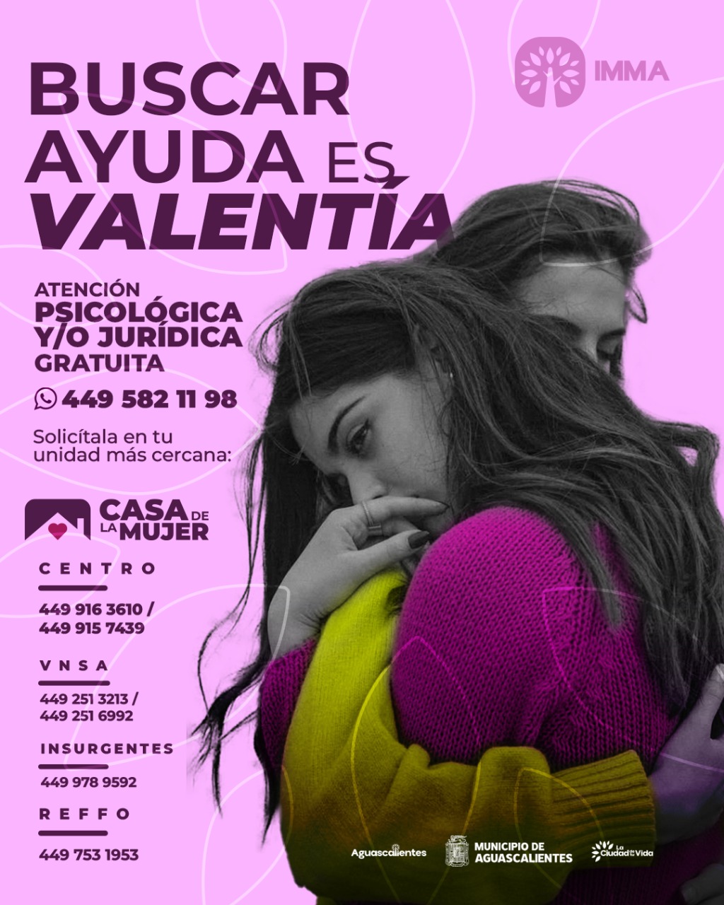 El IMMA invita a todas las mujeres que requieran apoyo a acercarse a sus instalaciones o comunicarse al número 449 582 11 98, donde recibirán atención profesional y orientación oportuna.