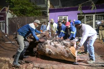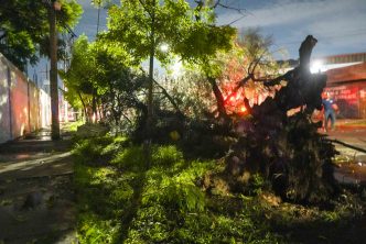 Ahí personal de la Secretaría de Servicios Públicos, acudieron a la avenida Independencia donde se reportó la caída de tres árboles de gran altura, por lo que personal del área de Parques y Jardines realizaron de manera oportuna la poda, retiro y limpieza del área; de esta manera la vialidad quedó liberada y abierta a la circulación.