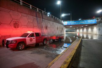 Finalmente, Leo Montañez, supervisó los trabajos de desagüe en el paso a desnivel de avenida Gabriela Mistral, donde el nivel del agua alcanzó los 90 centímetros; el sitio fue atendido por Bomberos del Municipio para liberar la vialidad y garantizar el tránsito seguro.