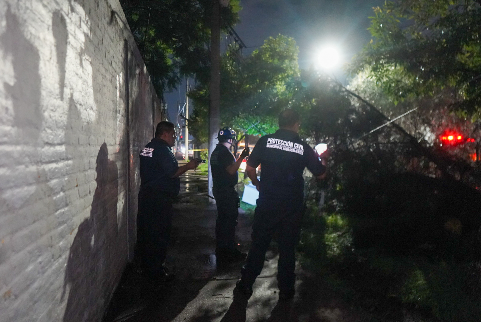 En la colonia Altavista, vecinos de Carlos Sagredo y José María Ávila solicitaron el apoyo tras la caída de un árbol y la interrupción del servicio eléctrico; elementos de Protección Civil acudieron y resguardaron la zona, ya que se detectó un transformador de la CFE derribado y cableado sobre la vía pública.