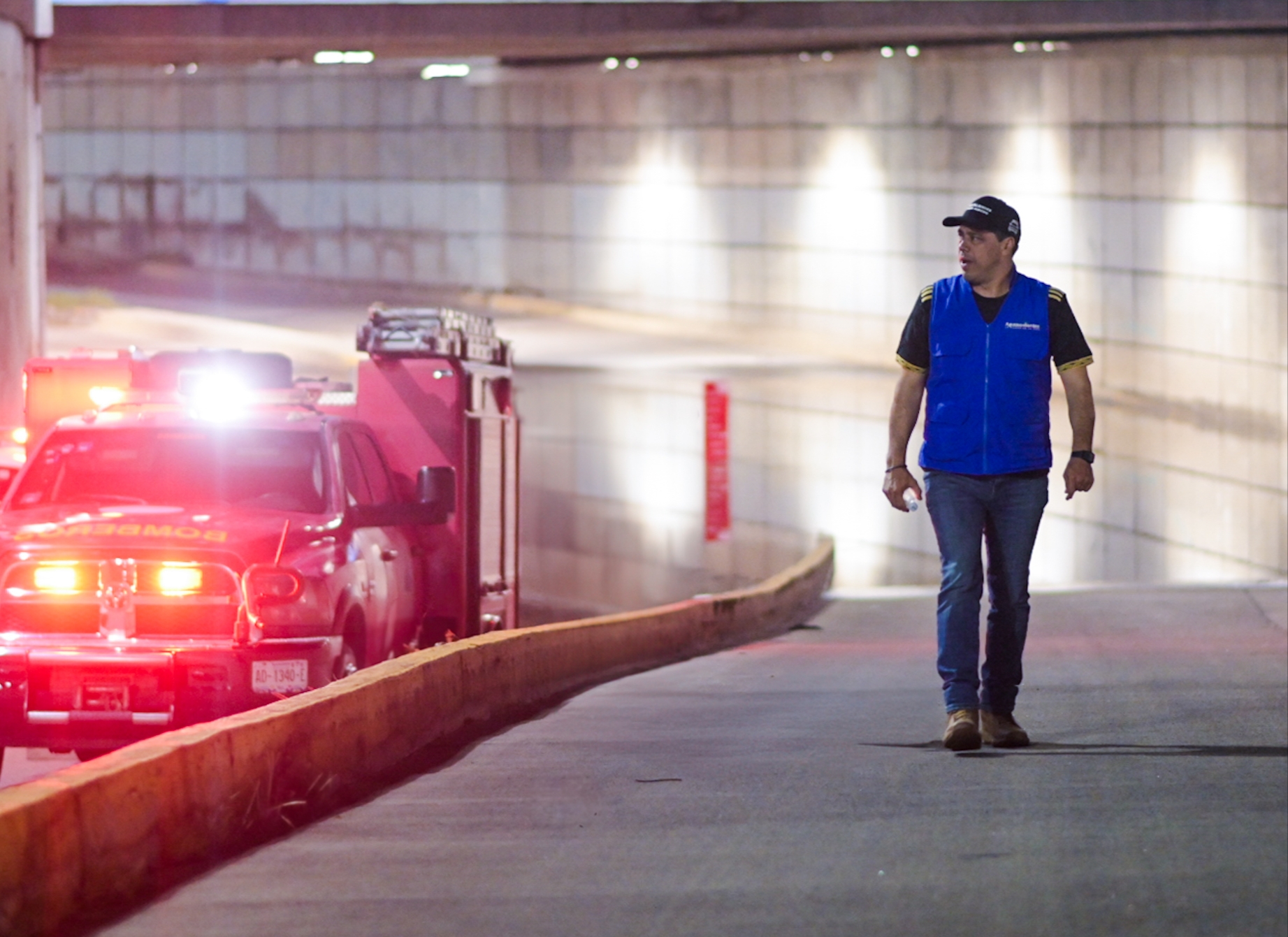 Finalmente, Leo Montañez, supervisó los trabajos de desagüe en el paso a desnivel de avenida Gabriela Mistral, donde el nivel del agua alcanzó los 90 centímetros; el sitio fue atendido por Bomberos del Municipio para liberar la vialidad y garantizar el tránsito seguro.