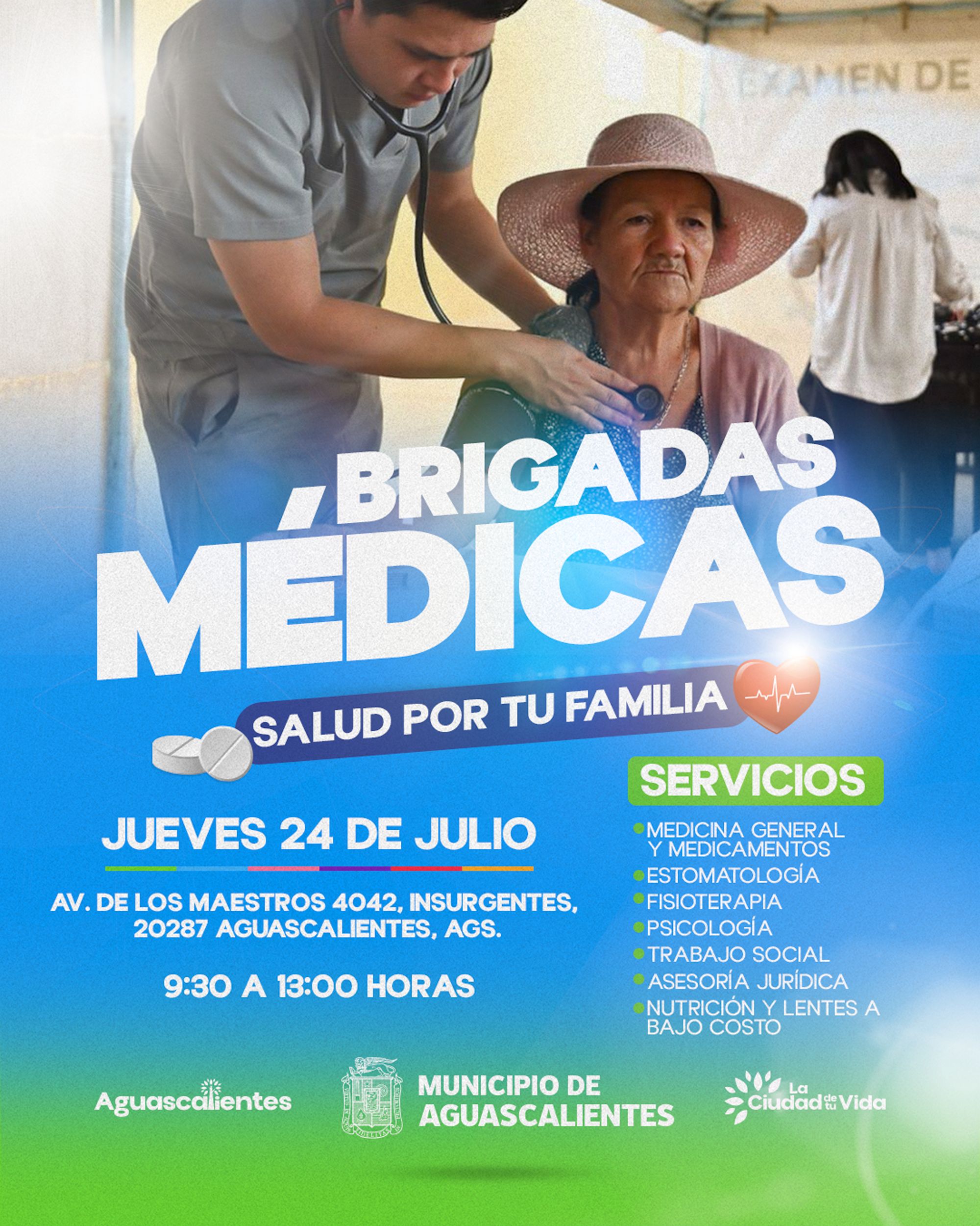 Con el objetivo de acercar servicios de salud a las familias de Aguascalientes que más los necesitan, el DIF Municipal anuncia nuevas jornadas médicas gratuitas, mismas que se llevarán a cabo en la comunidad Los Caños y en la Delegación Insurgentes.
