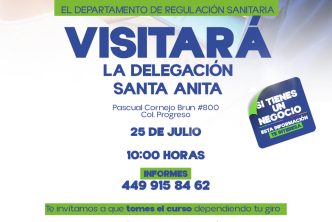 El Departamento de Regulación Sanitaria de la Coordinación General de Salud, visitará la Delegación Santa Anita, ubicada en Pascual Cornejo Brun #800 en la colonia Progreso, el viernes 25 de julio de 2025, para impartir cursos sobre manejo higiénico de alimentos y otros temas, dio a conocer la titular del área, Teresa Rendón.