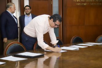 Este viernes 25 de julio, el presidente municipal Leo Montañez encabezó la cuarta firma de escrituras con Notarios para la consolidación de mejores espacios públicos en beneficio de la ciudadanía.