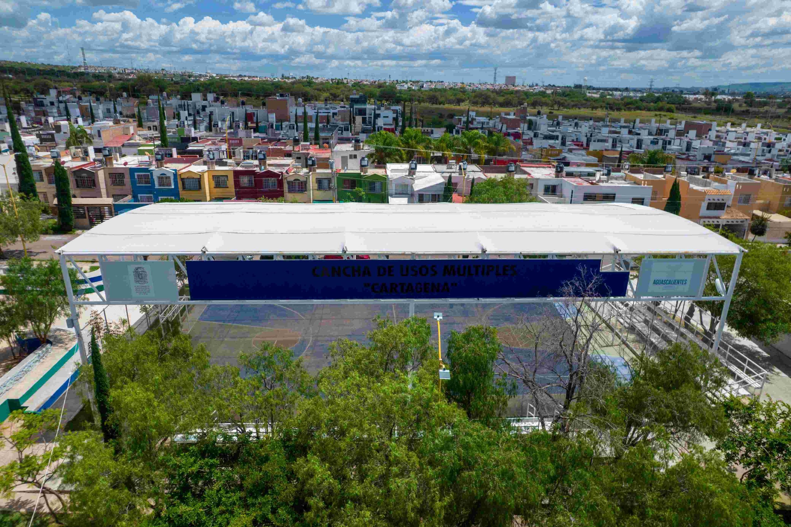 Con una inversión cercana a los 750 mil pesos del presupuesto participativo, la Secretaría de Obras Públicas del Municipio de Aguascalientes, llevó a cabo la rehabilitación del parque Cartagena, ubicado en el fraccionamiento con el mismo nombre, que incluyeron la colocación de una nueva velaria de 566 metros cuadrados.