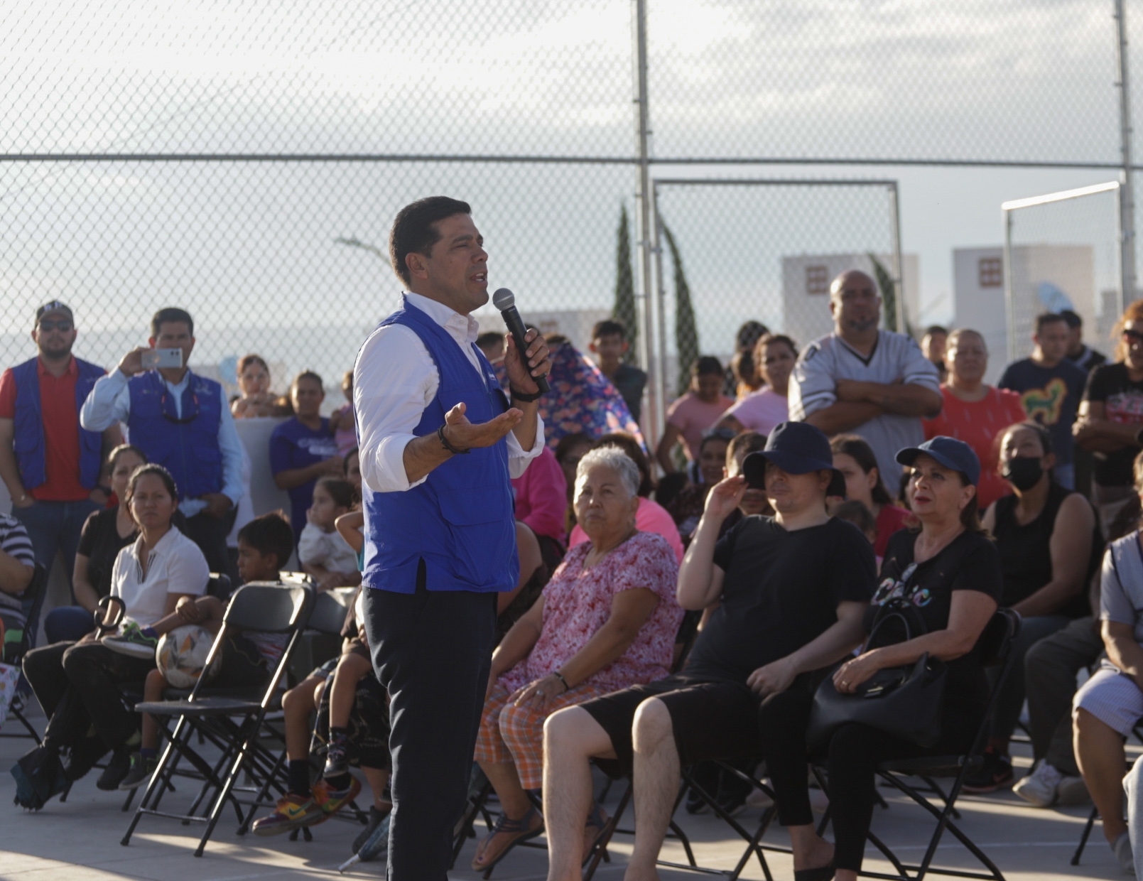 En el fraccionamiento Villa de Loma Dorada, el presidente municipal Leo Montañez, encabezó la entrega de un parque renovado que incluye cancha de usos múltiples, trotapista, gimnasio al aire libre, juegos infantiles, cisterna, luminarias, muro perimetral, malla ciclónica y una nueva área arbolada, con el propósito de ofrecer espacios más seguros y agradables para la convivencia familiar.