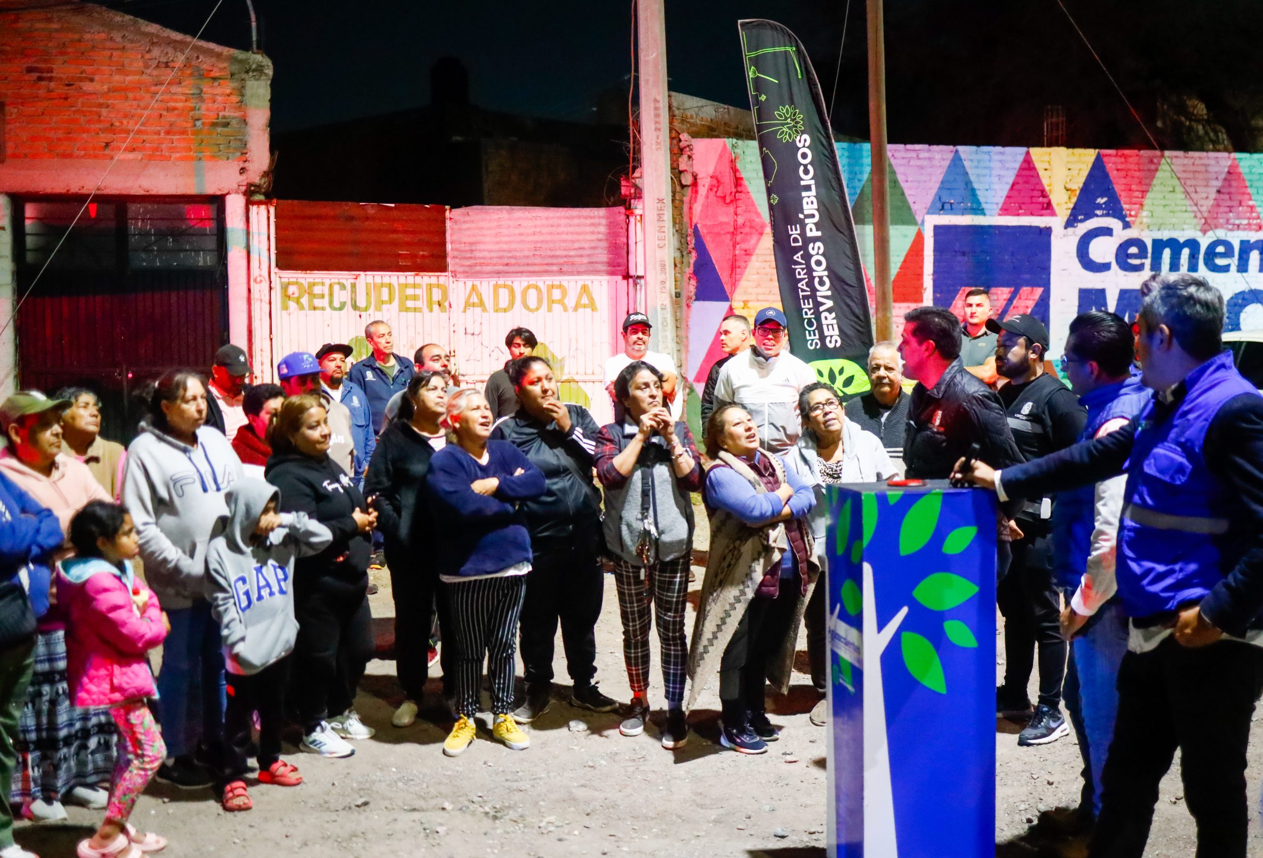 Durante sus recorridos por la zona oriente de la ciudad, vecinos de Claustros de Loma Dorada se acercaron al presidente municipal para solicitar la mejora del alumbrado público en el tramo de bulevar Guadalupano, a la altura del cruce con Humberto González Araujo.