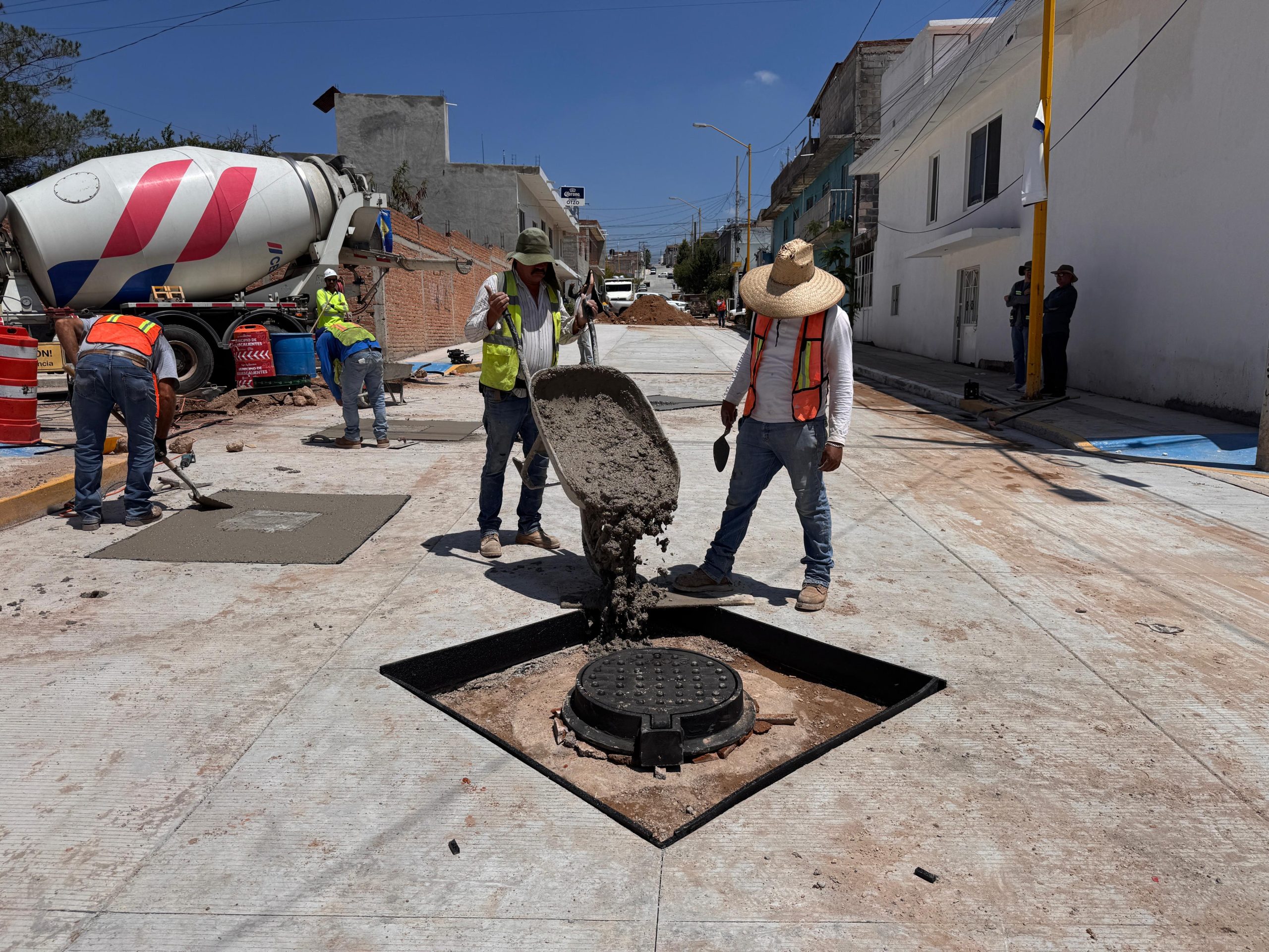 El Municipio de Aguascalientes, a través de la Secretaría de Obras Públicas (SOPMA), realiza trabajos de pavimentación con concreto hidráulico en las calles San Cosme y San Marcos, ubicados en la colonia Los Pericos, con el propósito de brindar vialidades seguras a peatones y automovilistas que transitan todos los días por esta zona de la ciudad.