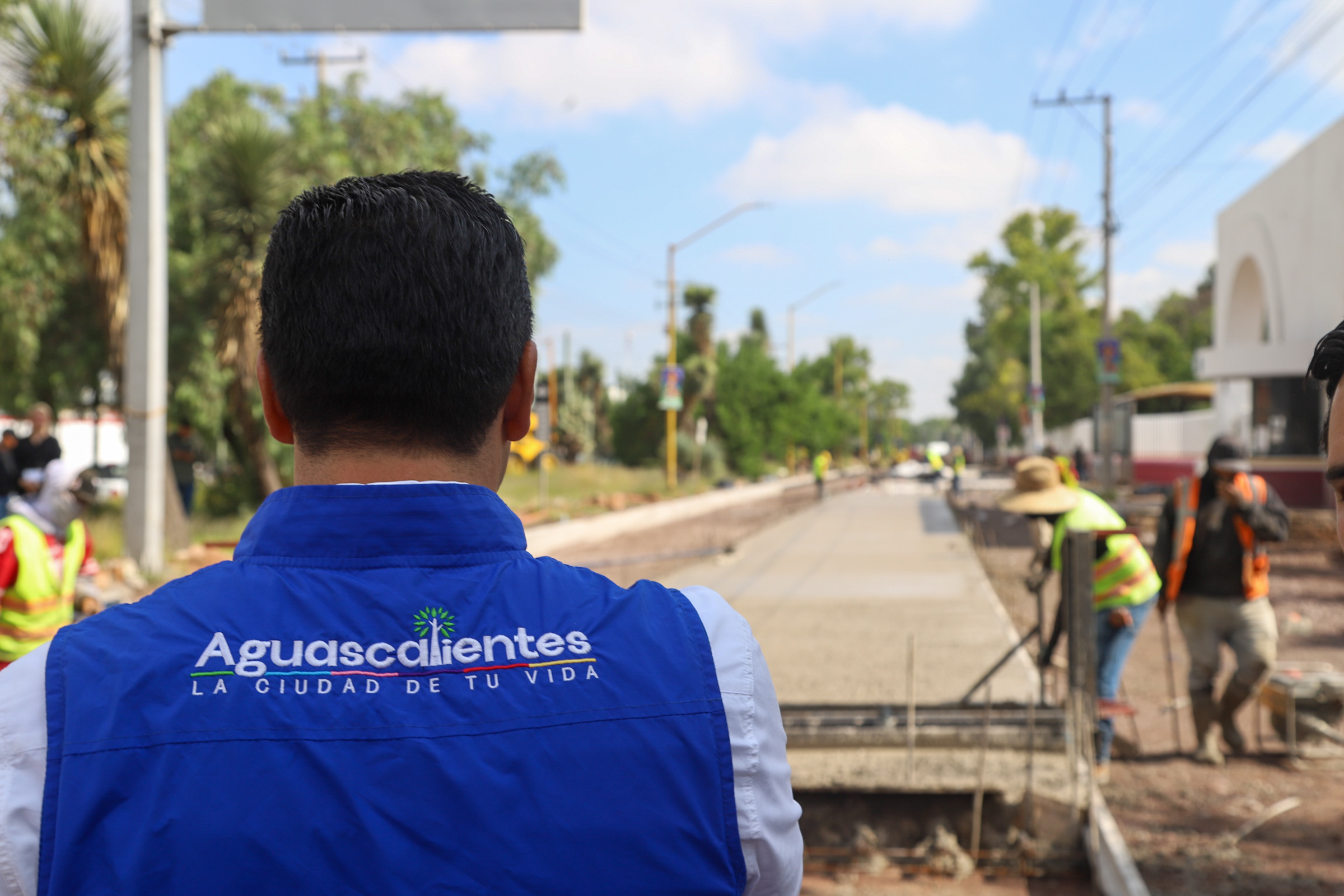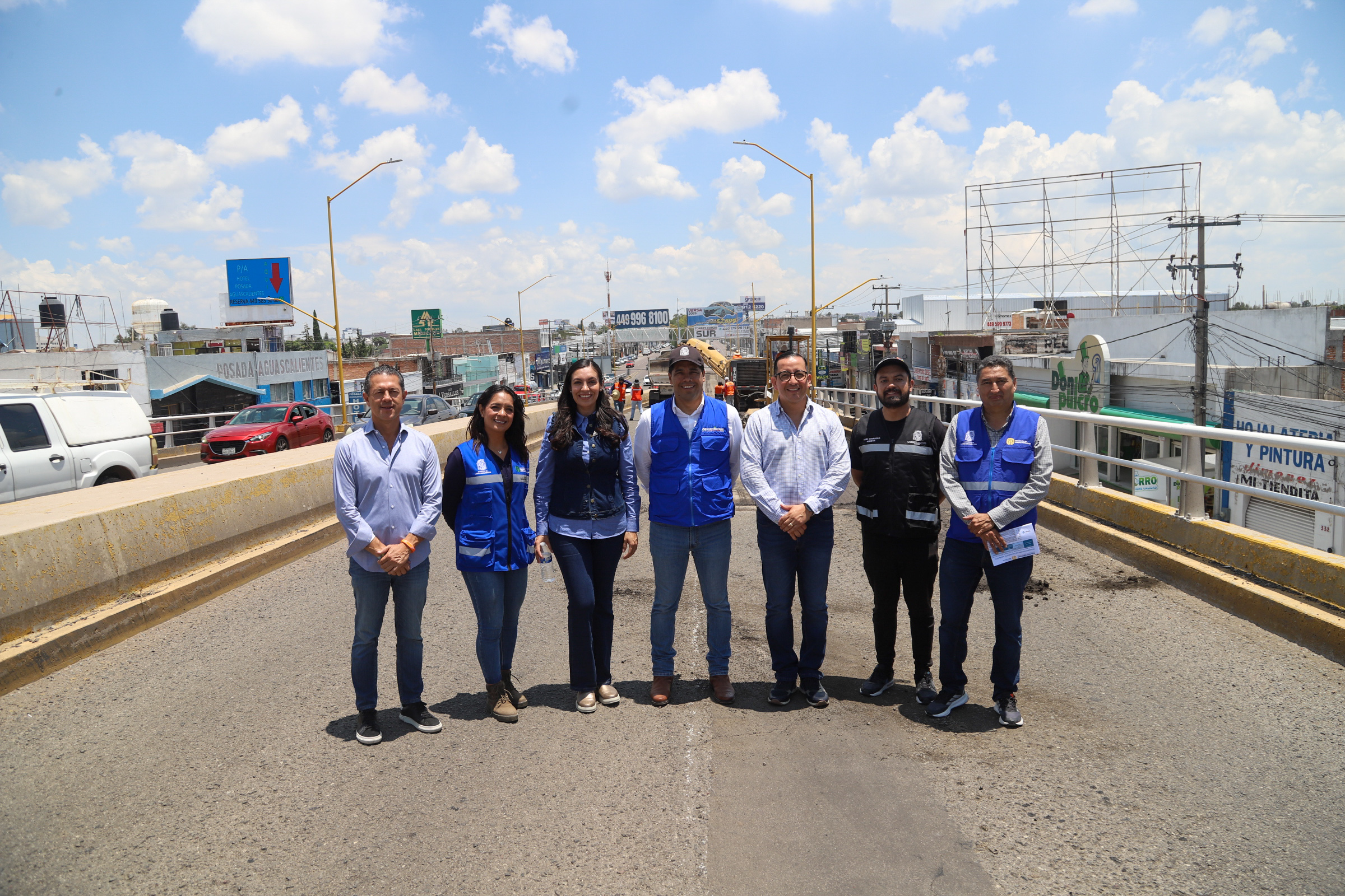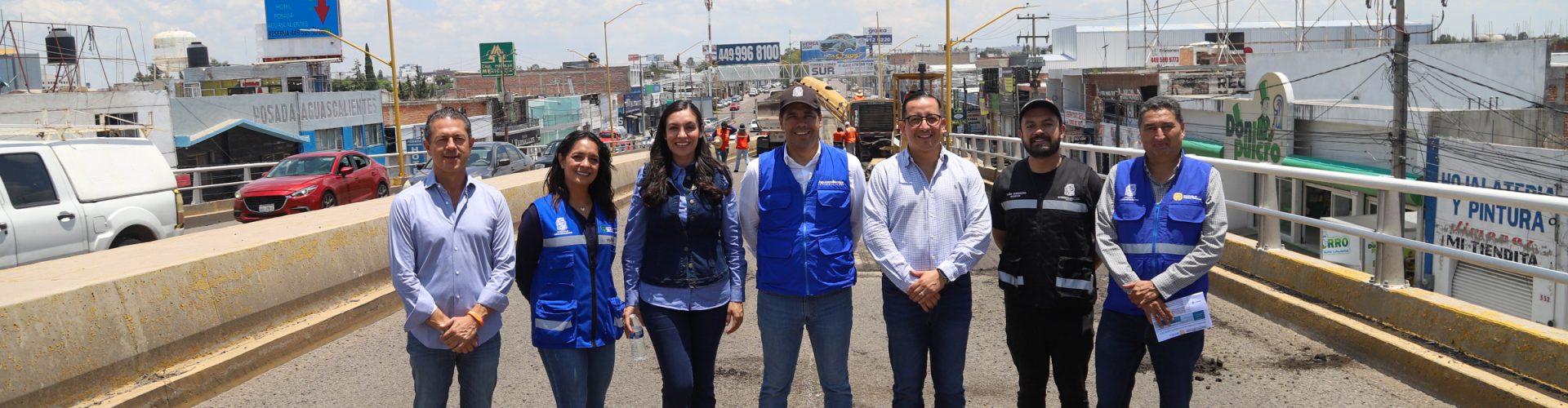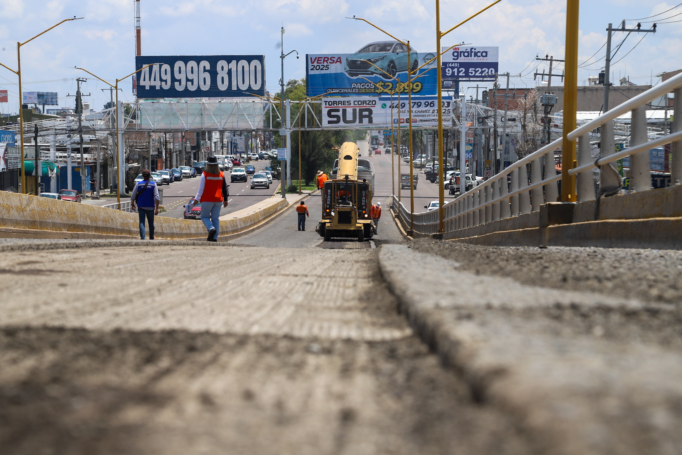 • Constató los trabajos que se realizan en el puente superior vehicular ubicado en Avenida Aguascalientes, así como la colocación de concreto hidráulico en Avenida Julio Díaz Torre y Avenida Mariano Hidalgo