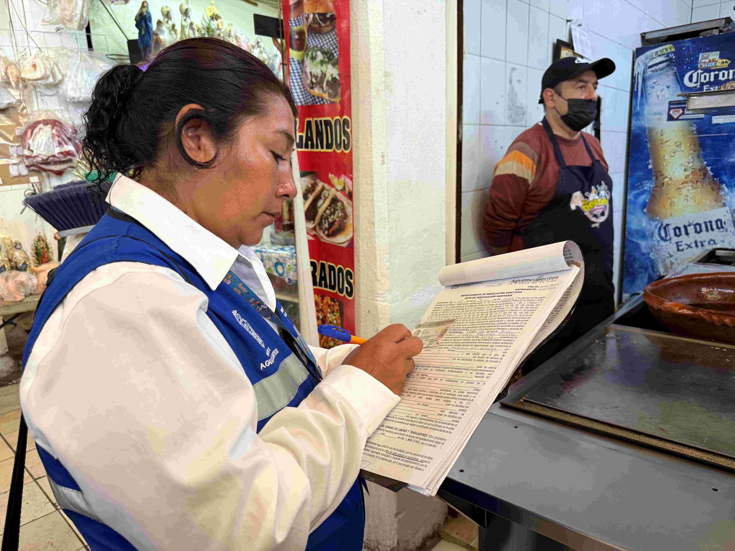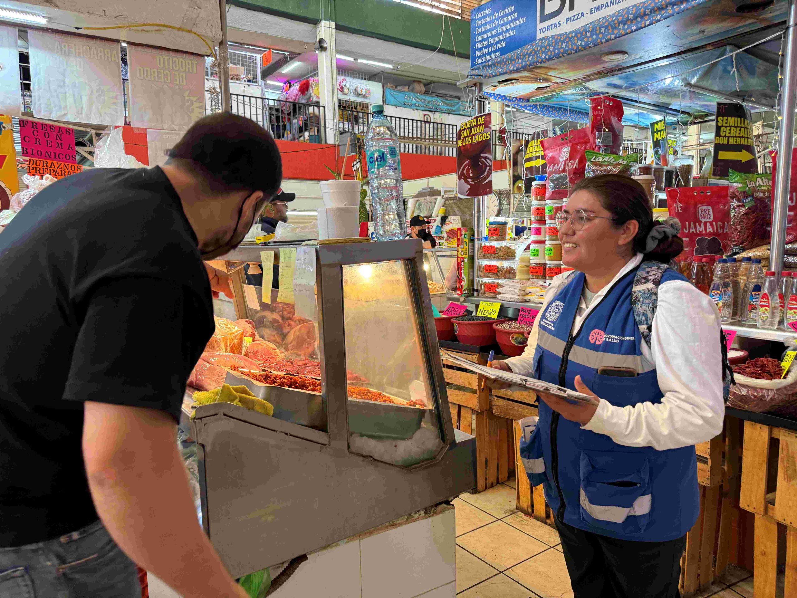 El Departamento de Regulación Sanitaria de la Coordinación General de Salud mantiene operativos en mercados públicos en el municipio de Aguascalientes, con el objetivo de verificar puestos fijos y semifijos de preparación de alimentos y los sanitarios que están dentro de estos establecimientos y cuidar la salud de la población.