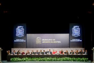 El presidente municipal, Leo Montañez, encabezó la sesión extraordinaria de Cabildo, en el teatro Morelos, en la que se realizó la entrega de premios al Mérito Deportivo y al Guerrero Azteca 2025, por parte del H. Ayuntamiento de Aguascalientes.