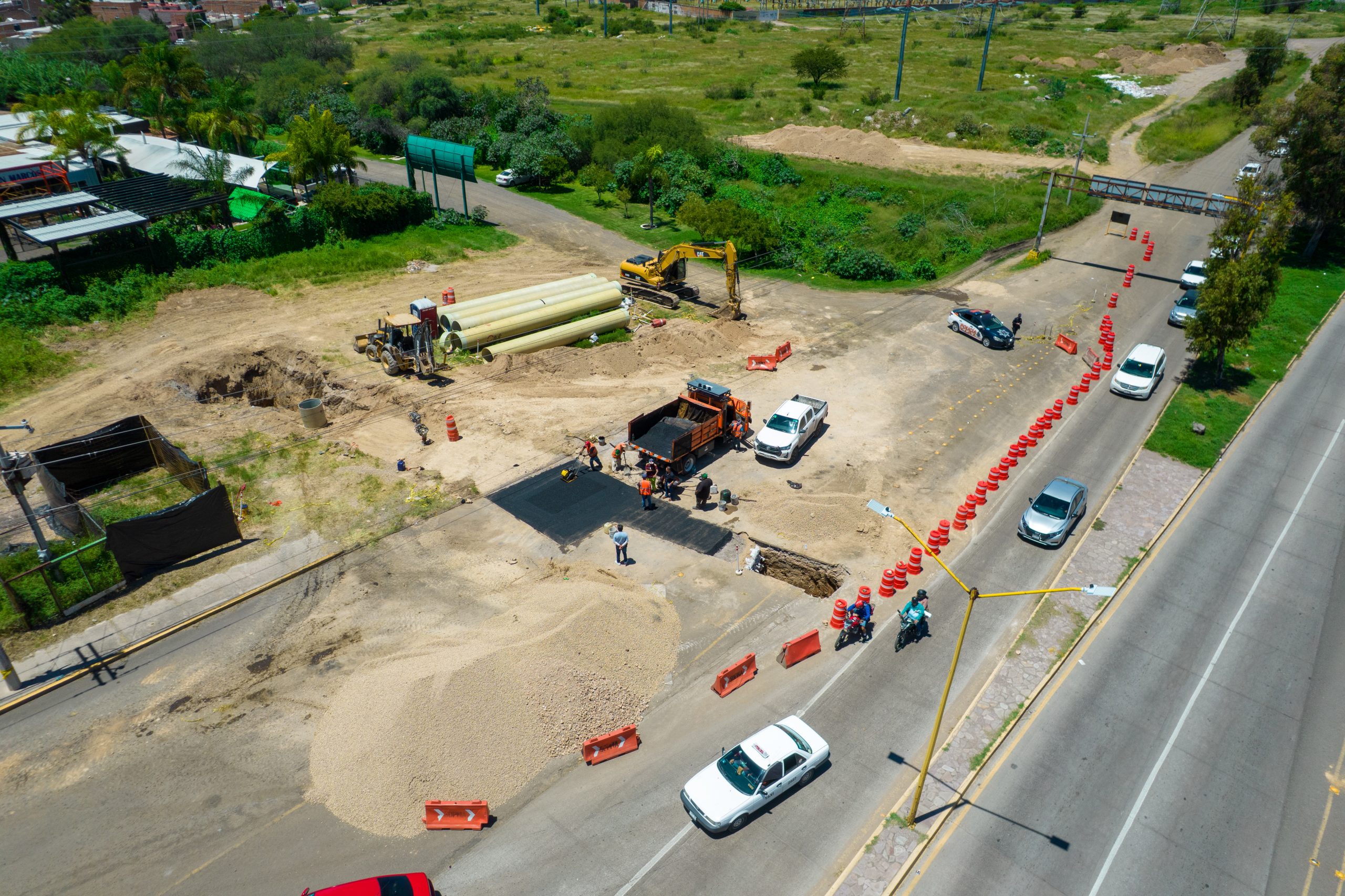 El presidente municipal visitó la obra que realiza MIAA sobre avenida Aguascalientes, a la altura de Boulevard Guadalupano, donde se rehabilita el colector sanitario, construcción de pozos de visita y tubería de alta resistencia y durabilidad. En el tramo afectado, supervisó que la vialidad cuente con el nivel óptimo para colocar carpeta asfáltica y reabrirla al tránsito en los próximos días.