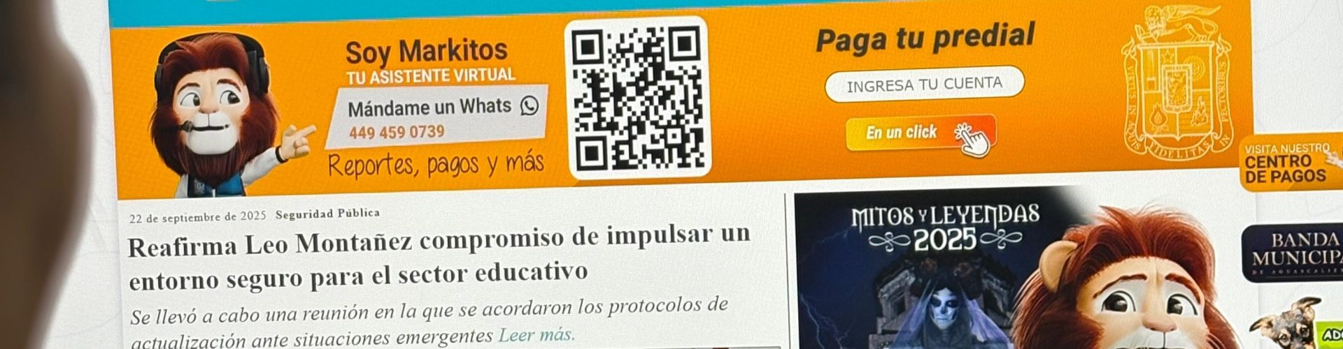 - Acceso al sitio del MIAA, para pagos en línea y WhatsApp para reportes 449 469 99 43