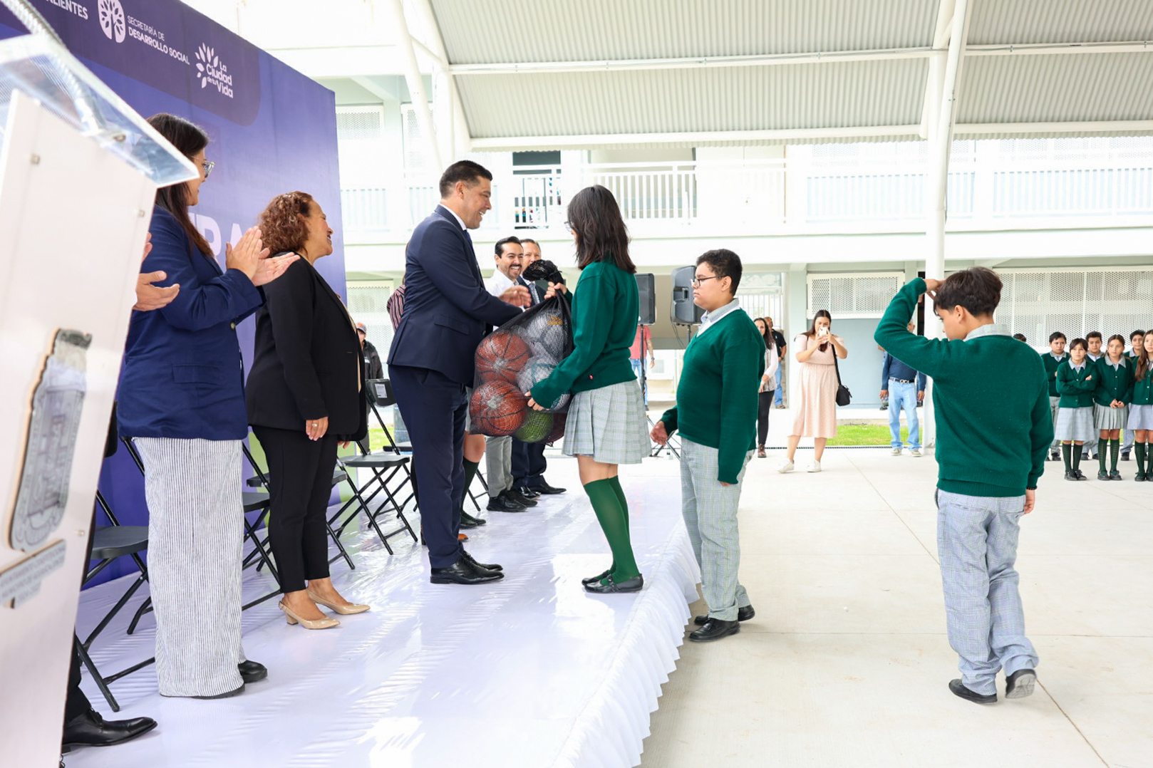 - Se hizo entrega de material deportivo y se reconoció a los mejores promedios del plantel educativo