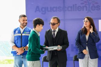 También estuvieron presentes Christian Salvador Gutiérrez Márquez, titular de la Secretaría de Desarrollo Social Municipal; Laura Espinoza Calderón, directora de la secundaria general No. 45; María Elena Saucedo de Lara, titular de la SisAAE Zona Ojocaliente; Raúl Silva Pérez Chica, supervisor de la zona escolar No. 026 y Armando León López, delegado de Guadalupe Peralta.