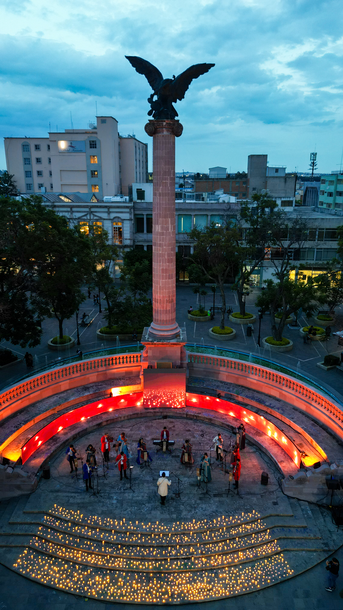 Para dar inicio con los festejos del 450 Aniversario regidores, síndicos acompañaron al titular del IMAC y Luis Enrique García López, secretario del H. Ayuntamiento y director general de Gobierno, realizaron la develación de pendones conmemorativos en la fachada de Palacio Municipal y la música de Candle Light Ensamble Barroco, Beatus Tempus en la Exedra, muestra del talento artístico hidrocálido.