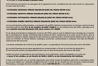 El Instituto Municipal Aguascalentense para la Cultura (IMAC), invita a creadores locales a participar en el Concurso de Gráfica Urbana 2025, un espacio que busca reconocer, difundir y estimular el talento artístico en las disciplinas de grabado, diseño gráfico, fotografía y graffiti.