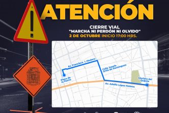 La Secretaría de Seguridad Pública Municipal (SSPM), a través de la Dirección de Movilidad y Tránsito, informa a la ciudadanía sobre cierres viales con motivo de la “Marcha Ni Perdón Ni Olvido”, que se llevará a cabo este jueves 2 de octubre.