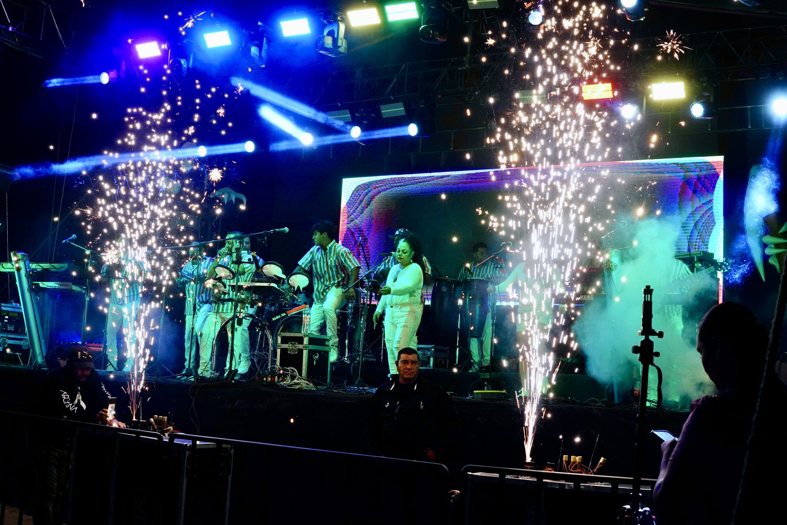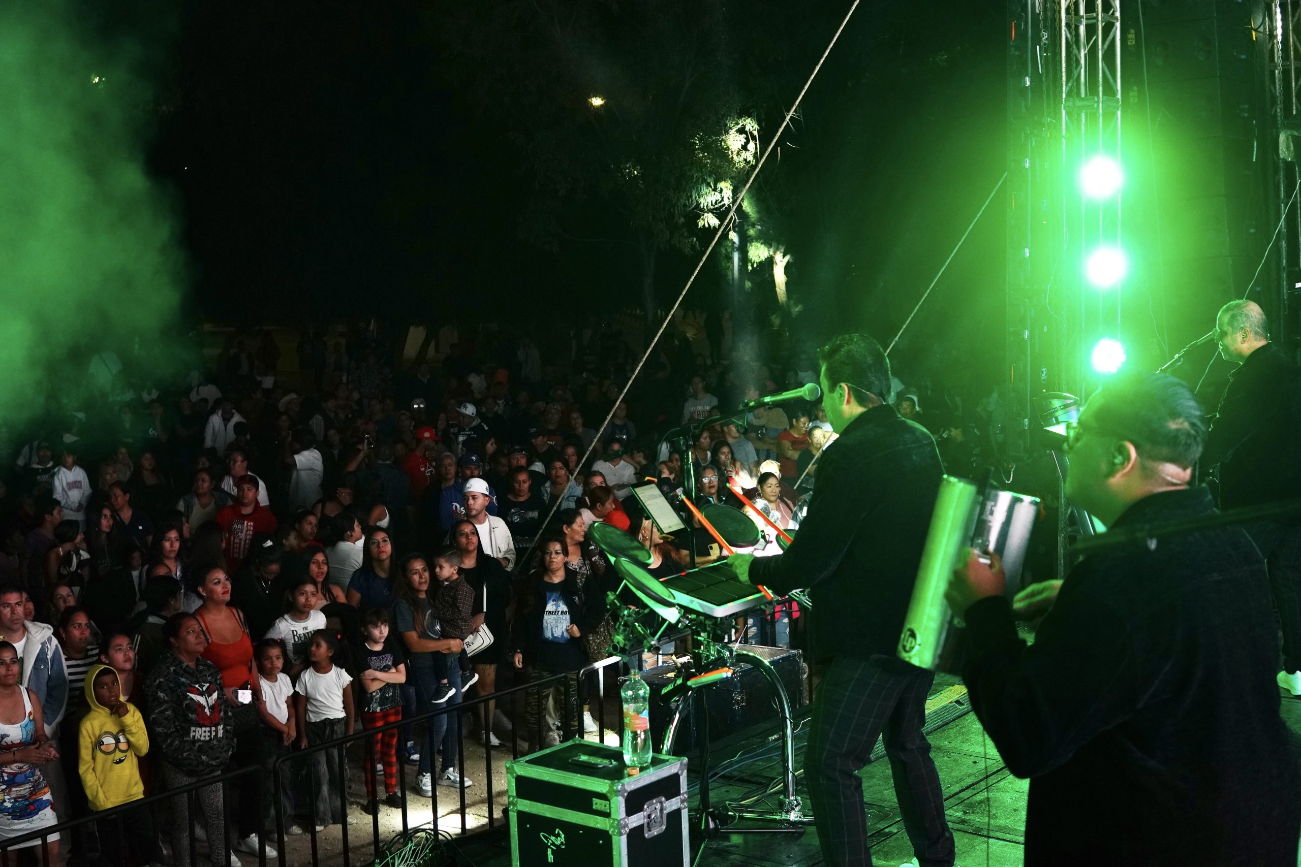 El momento más vibrante llegó con la presentación de Grupo Espanto, quienes conquistaron el escenario y pusieron a todos de pie con su estilo único, logrando que la plaza se convirtiera en una auténtica fiesta comunitaria.