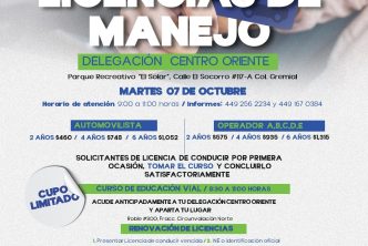 Por su, parte, quienes van a realizar el trámite por primera ocasión, deberán presentarse a las 8:30 a.m., con identificación oficial, cuaderno, pluma y lápiz para tomar el curso de Educación Vial, ya que es indispensable aprobarlo para dar continuidad al trámite de la expedición de la licencia.