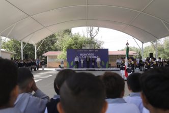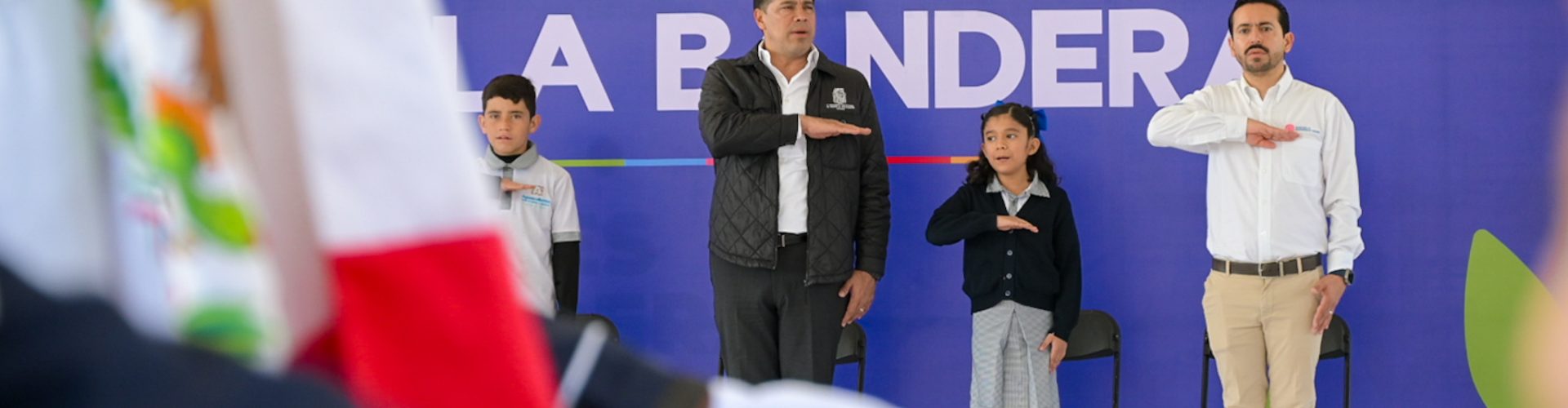 - Asimismo, presidió la ceremonia de honores a la bandera en la escuela primaria Fernando Montes de Oca
