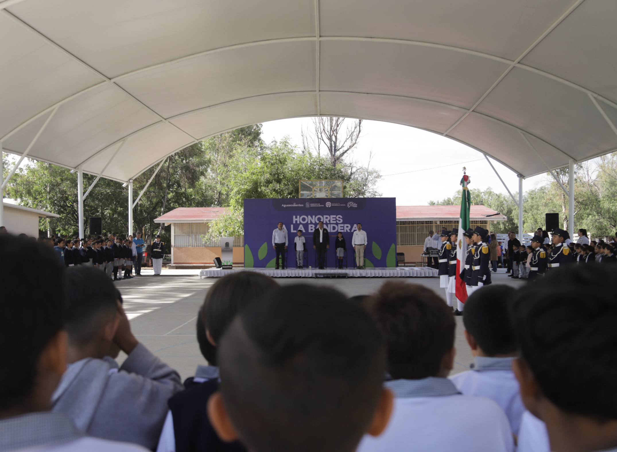 Al encabezar la ceremonia de honores a la bandera, el presidente municipal de Aguascalientes reconoció a los alumnos con el mejor promedio en la institución educativa con la entrega de tablets a Alicia Jazmín Guzmán González de 1 A, Mario Iván Rodríguez Montoya de 2 A, Leilany Jashibe Cortez Sierra de 3 B, Karely Chanel Díaz de León González, Ronaldo Daniel Serrano Moreno de 5 A e Iker Santiago Rosales Huizar de 6 B.