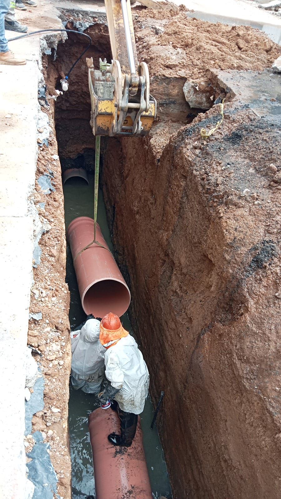 Explicó que inicialmente el proyecto contemplaba la sustitución de 90 metros lineales y con base a un análisis detallado que realizó el organismo, se determinó ampliar los trabajos a 200 metros lineales, utilizando una tubería de 24 pulgadas de diámetro, lo que permite mejorar la capacidad de conducción y prevenir futuras obstrucciones o colapsos en la red.