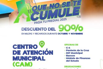 INVITA MUNICIPIO A APROVECHAR EL 90 POR CIENTO DE DESCUENTO EN MULTAS Y RECARGOS POR CONCEPTO DE PREDIAL