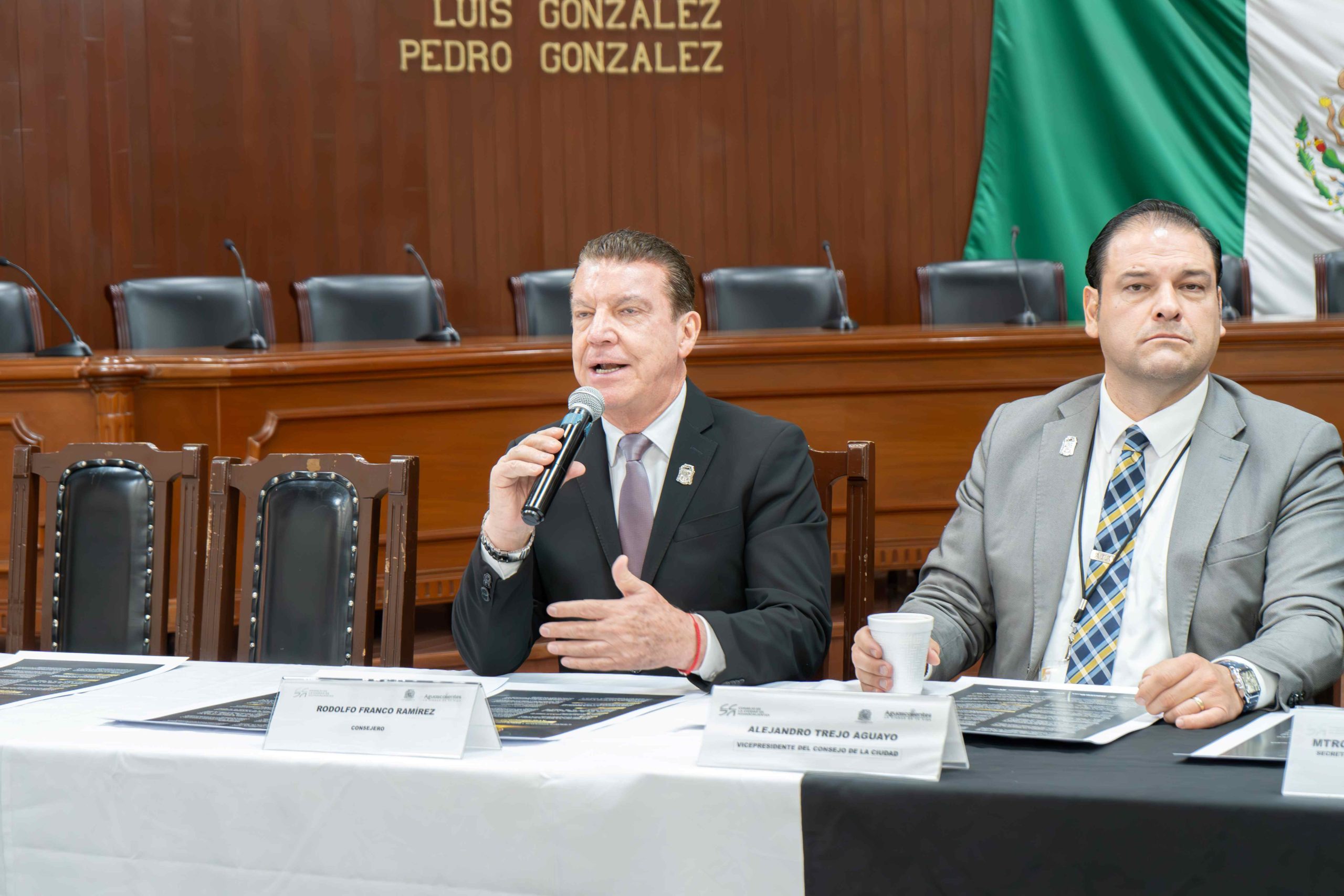 Se contó con la participación en esta rueda de prensa efectuada en el Salón Cabildo de Palacio Municipal, del regidor Alejandro Serrano Almanza y del Consejero de la Ciudad, Rodolfo Franco Ramírez.